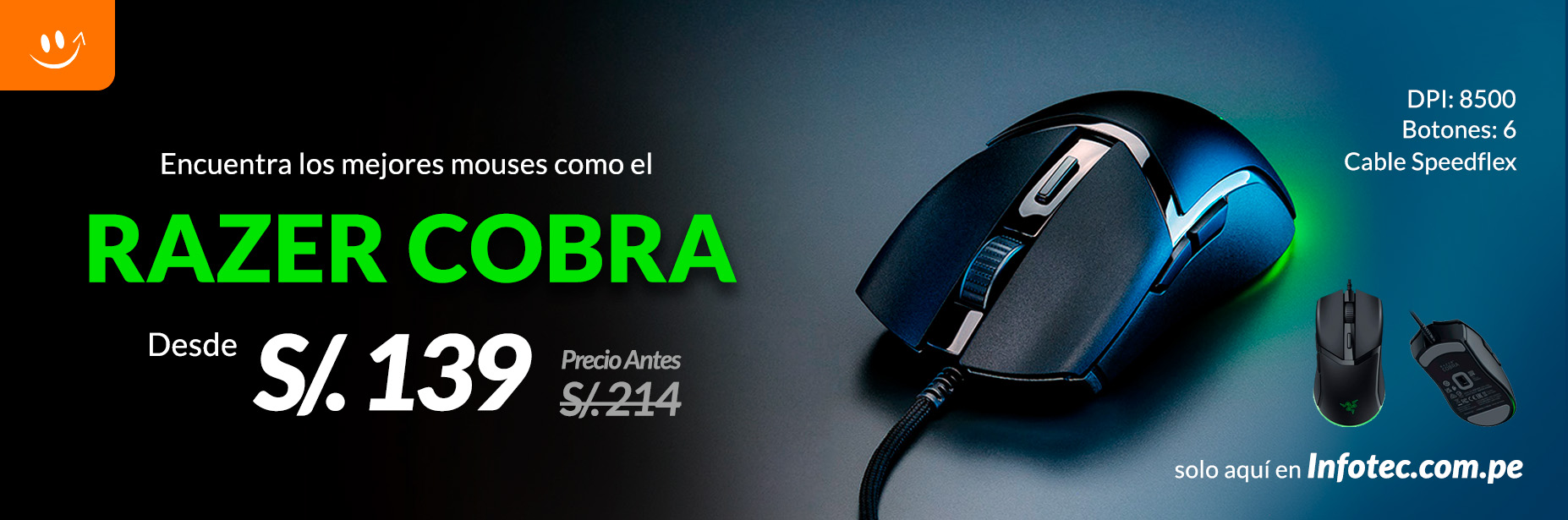 MOUSE GAMER RAZER COBRA ( RZ01-04650100-R3U1 ) 8500 DPI | LED-CHROMA RGB