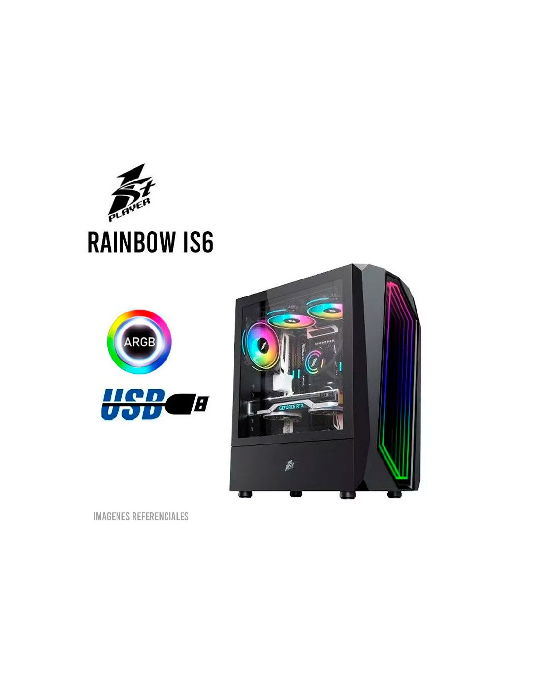 El 1ST Player RAINBOW IS6 es un case gamer ATX con diseño robusto y versátil, ideal para configuraciones de alto rendimiento. Soporta GPUs de hasta 340 mm y coolers de CPU de hasta 170 mm, ofreciendo espacio para múltiples combinaciones de almacenamiento (hasta 3 HDD de 3,5″ o 3 SSD de 2,5″) y hasta 8 ventiladores de 12 cm para una excelente refrigeración. Incorpora panel de E/S con USB 3.0, USB 2.0 y audio HD, 7 ranuras PCI y estructura duradera, optimizada para usuarios que buscan rendimiento, compatibilidad y estilo gamer en un formato compacto.