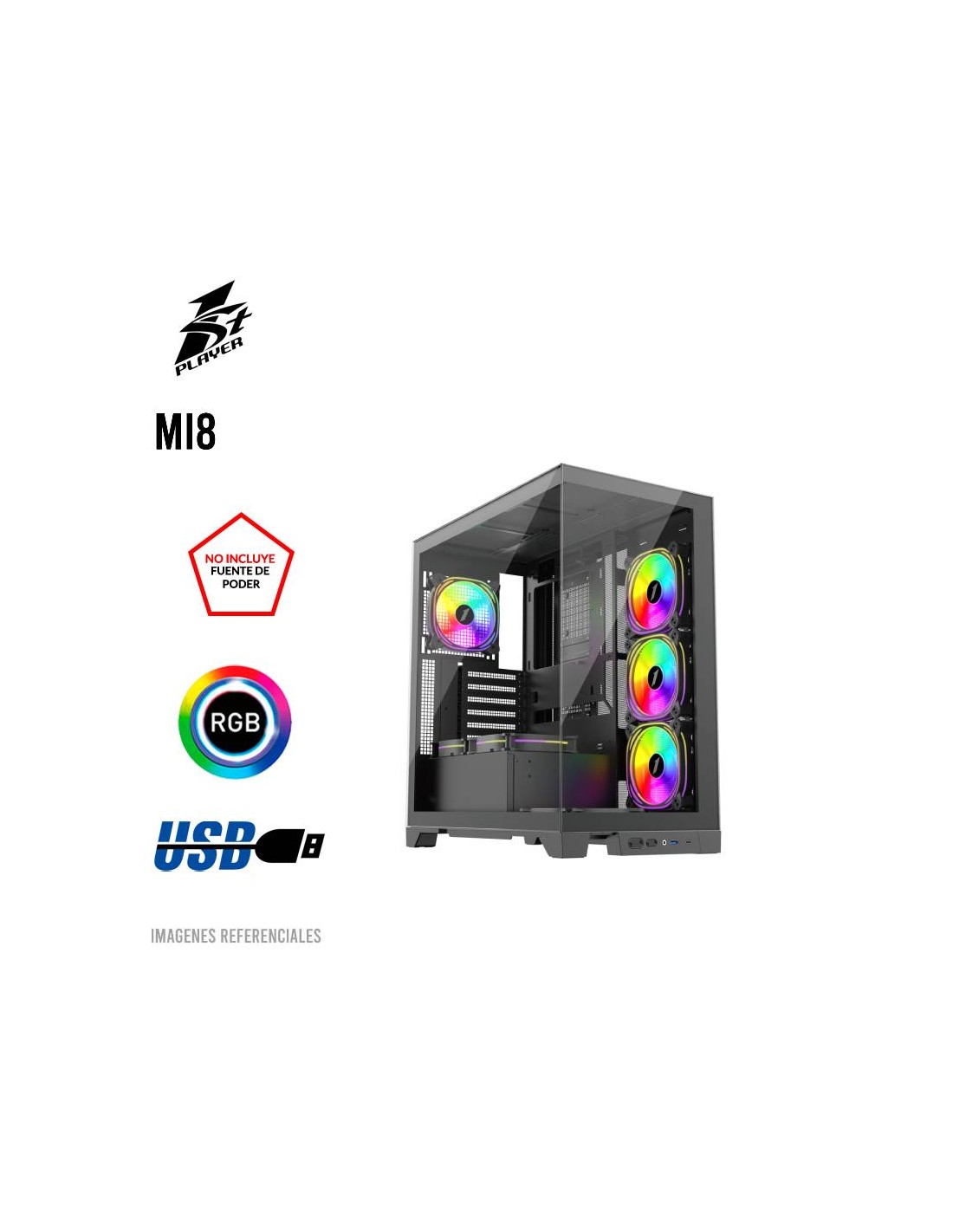 El CASE 1st Player MI8 Black es un case gamer con diseño moderno y panel lateral de vidrio templado, que permite lucir los componentes internos. Incorpora iluminación LED RGB personalizable y está optimizado para una buena gestión del flujo de aire. No incluye fuente de poder, lo que brinda libertad para elegir la más adecuada según el hardware. Ideal para configuraciones gaming o entusiastas que buscan estética y funcionalidad.