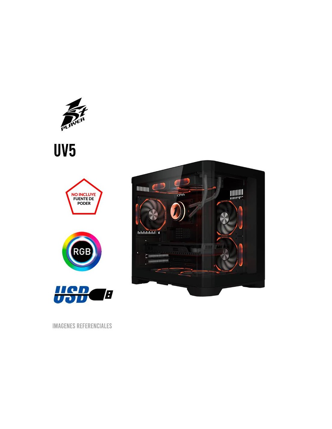 CASE 1ST PLAYER UV5 BLACK ( 1S-CA1ST-UV5 ) SIN FUENTE | VIDRIO TEMPLADO | LED-RGB