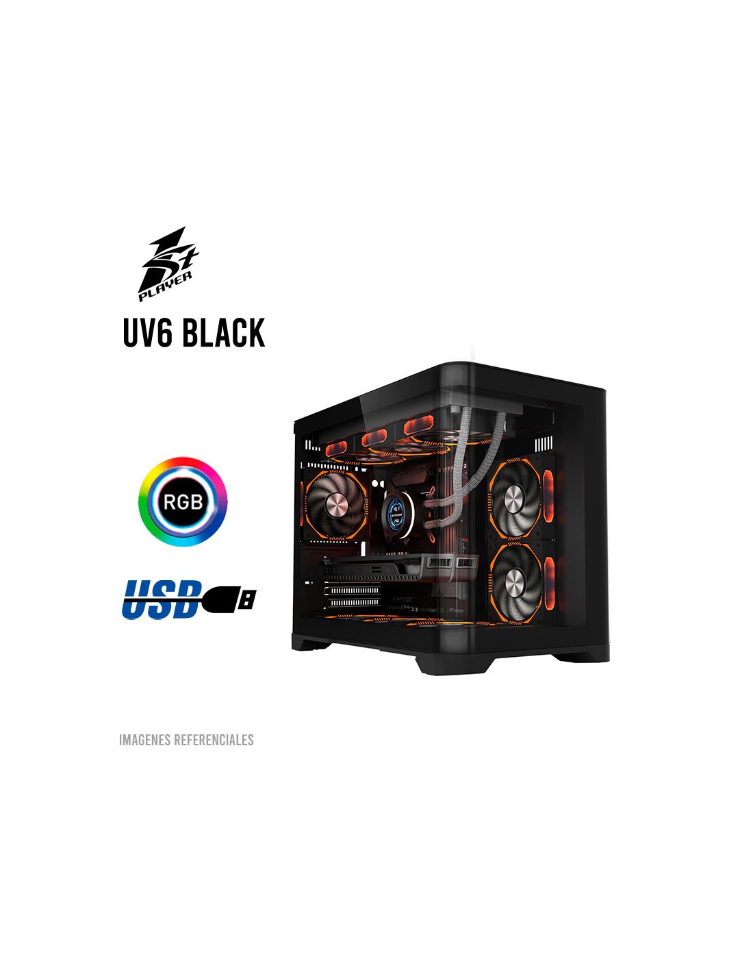 CASE 1ST PLAYER UV6 BLACK ( 1S-CA1ST-UV6 ) SIN FUENTE | VIDRIO TEMPLADO | LED-RGB