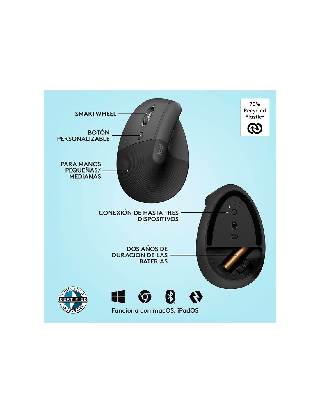 MOUSE LOGITECH LIFT LEFT VERTICAL ERGONOMICO ( 910-006467 ) WIRELESS - BT | BLACK