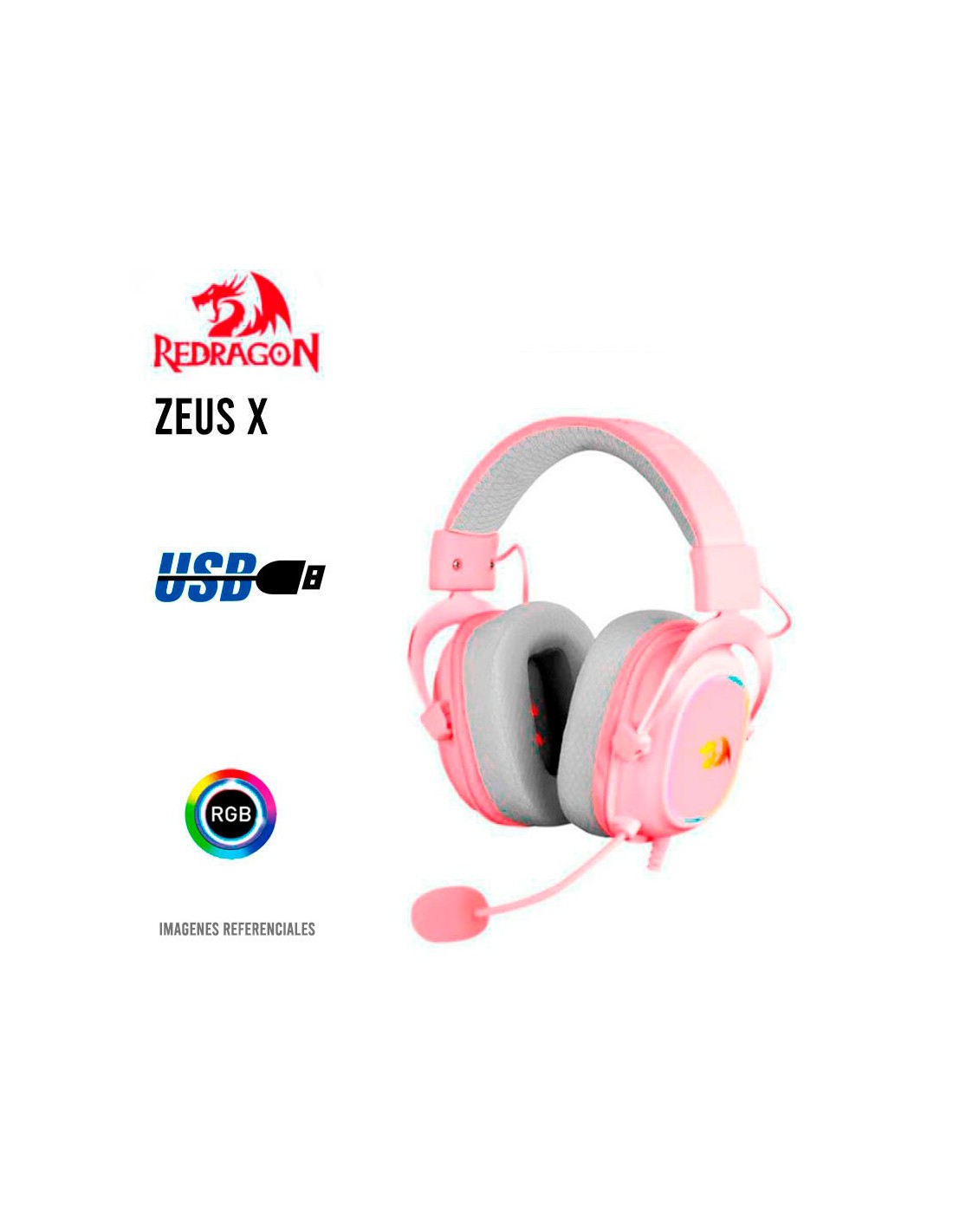 AUDIFONO GAMER REDRAGON ZEUS X ( H510P-RGB ) 7.1 VIRTUAL | RGB | USB | 3.5 MM | PINK