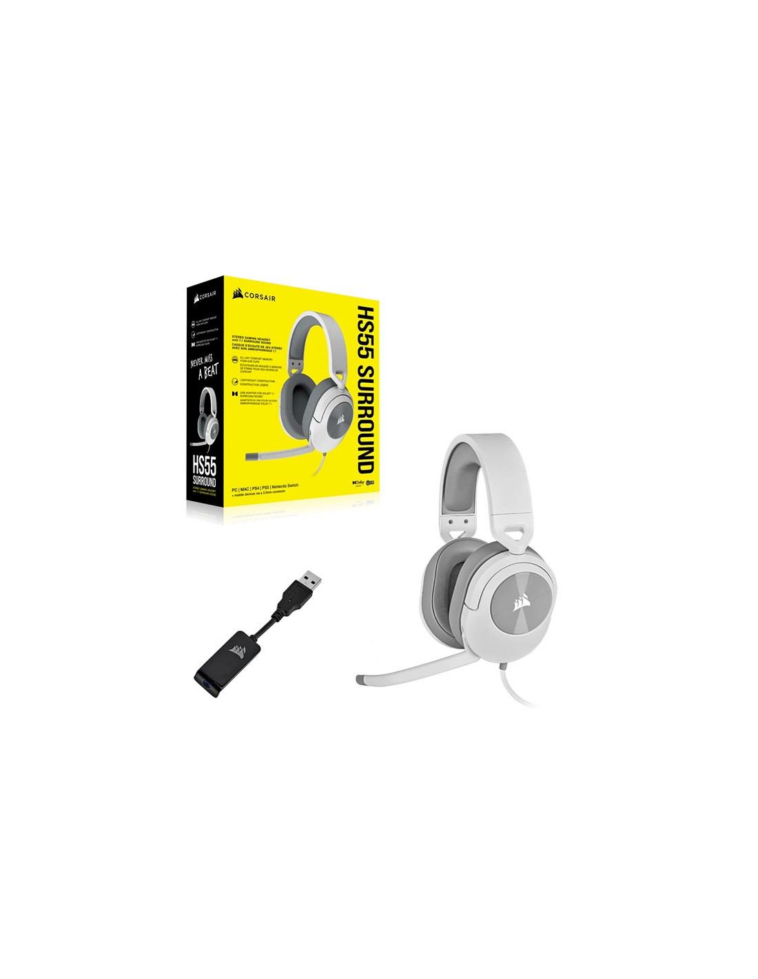 AUDIFONO GAMER CORSAIR HS55 SURROUND (CA-9011390-WW) WHITE | MULTIPLATAFORMA