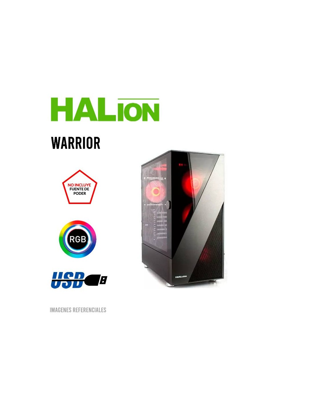 CASE GAMER HALION WARRIOR ( HA-CT660 ) SIN FUENTE | VIDRIO TEMPLADO | LED-RGB