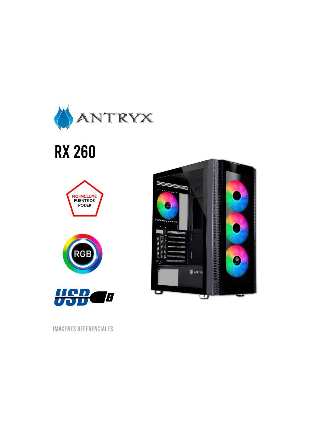 CASE ANTRYX RX 260 BLACK ( AC-RX260KFR ) S/FUENTE | VIDRIO TEMPLADO | 4 FIXED-RGB
