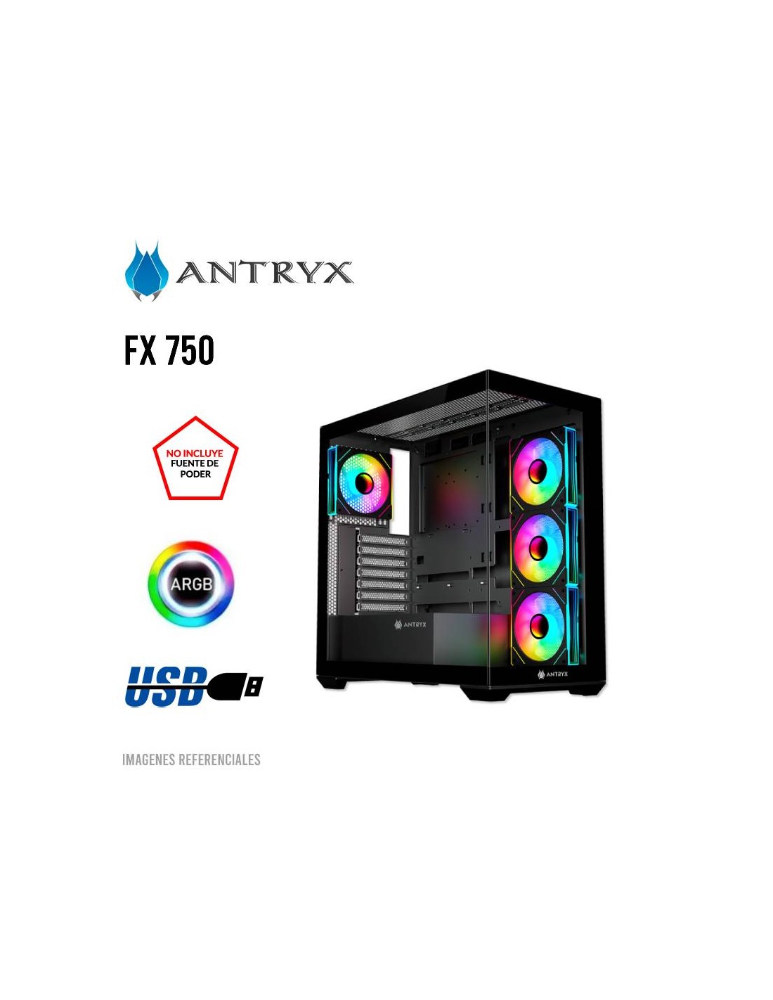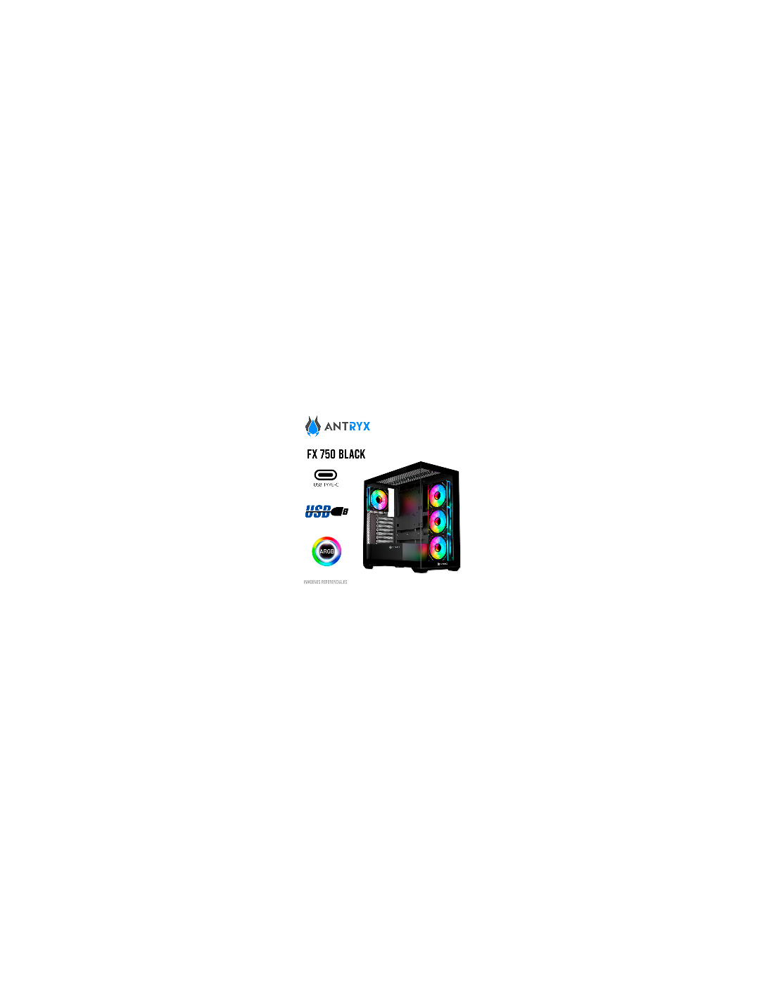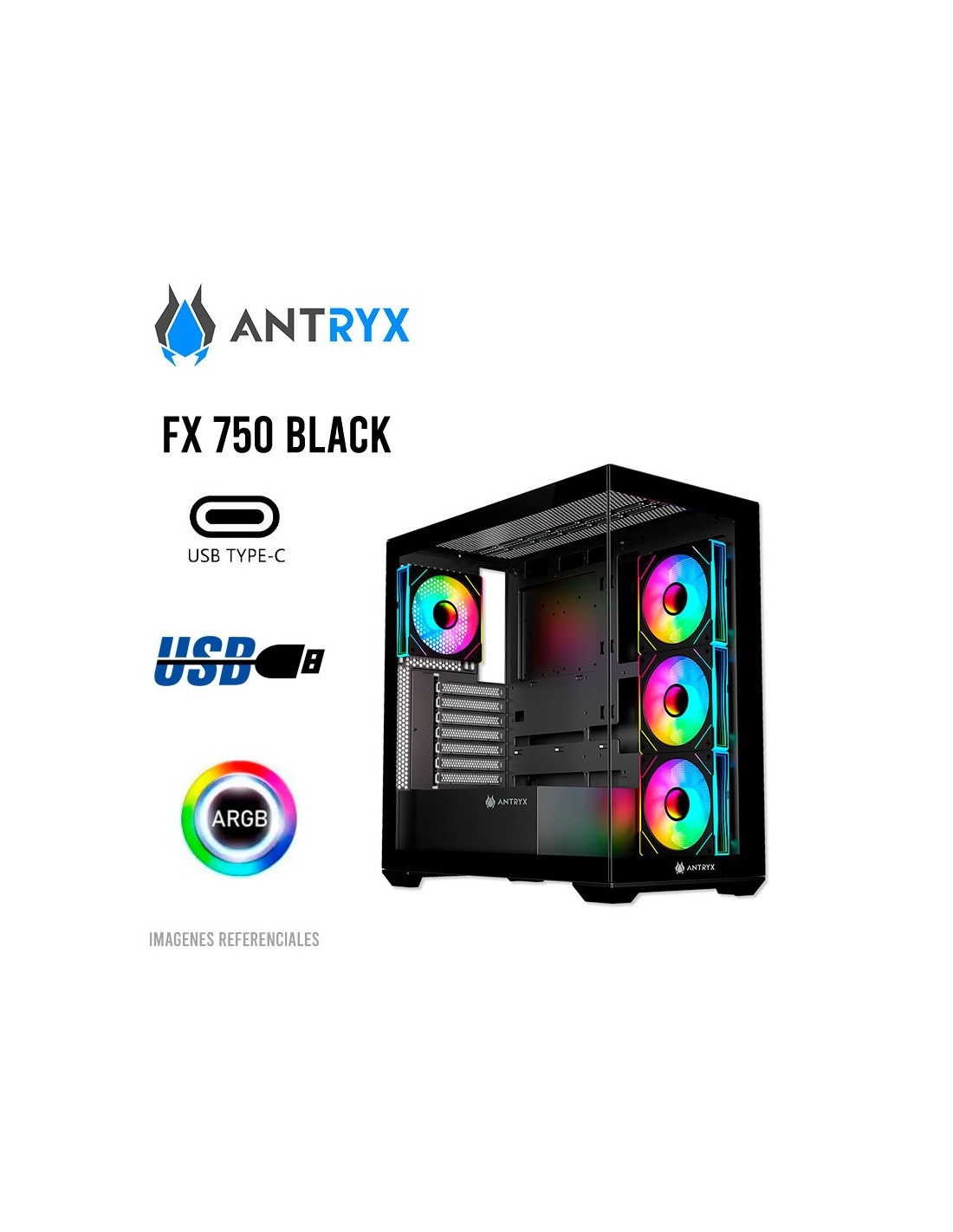 CASE ANTRYX FX 750 BLACK ( AC-FX750K ) S/FUENTE | VIDRIO TEMPLADO | LED-ARGB