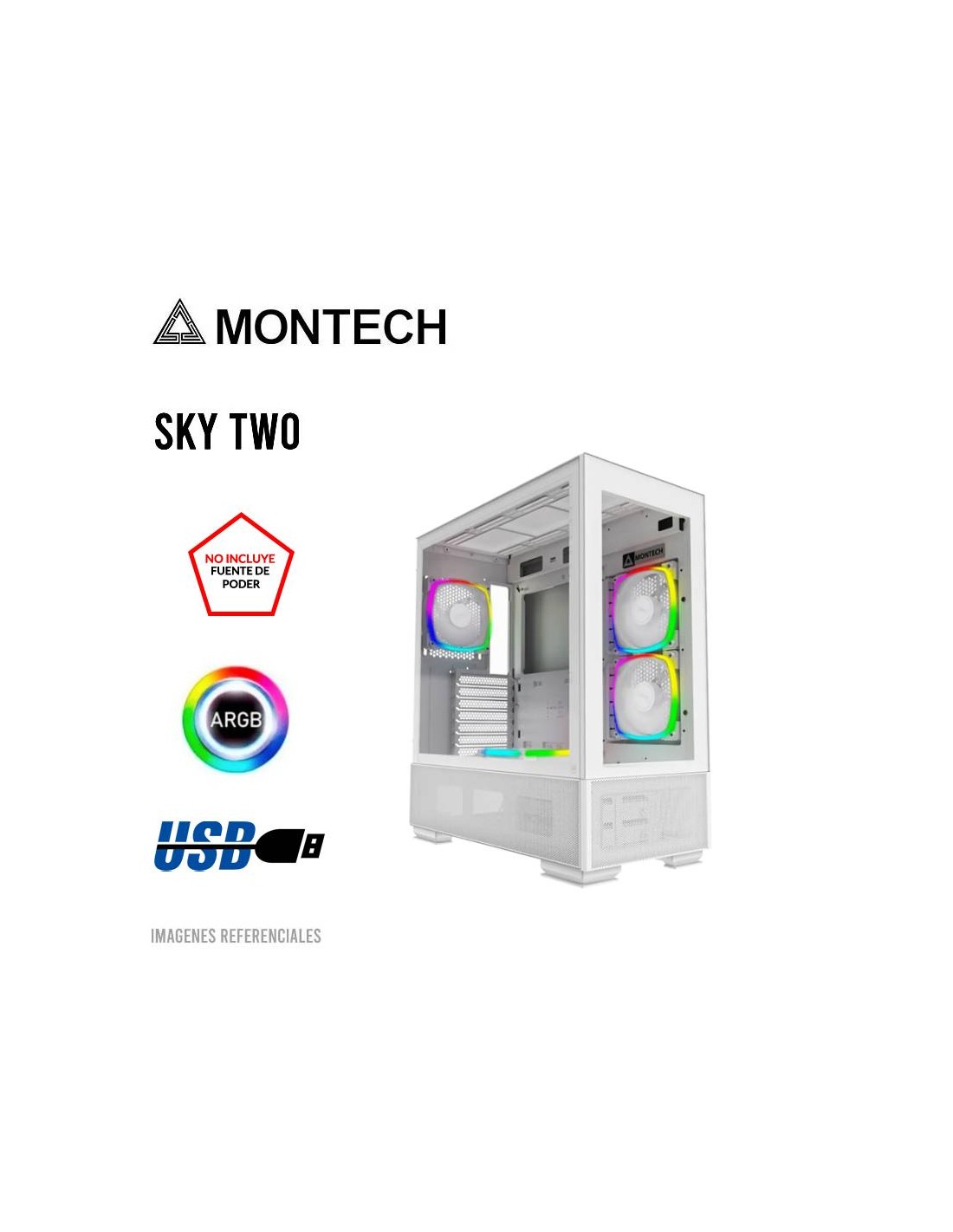 CASE MONTECH SKY TWO WHITE ( SKY TWO-W ) S/ FUENTE | VIDRIO TEMPLADO | LED-ARGB