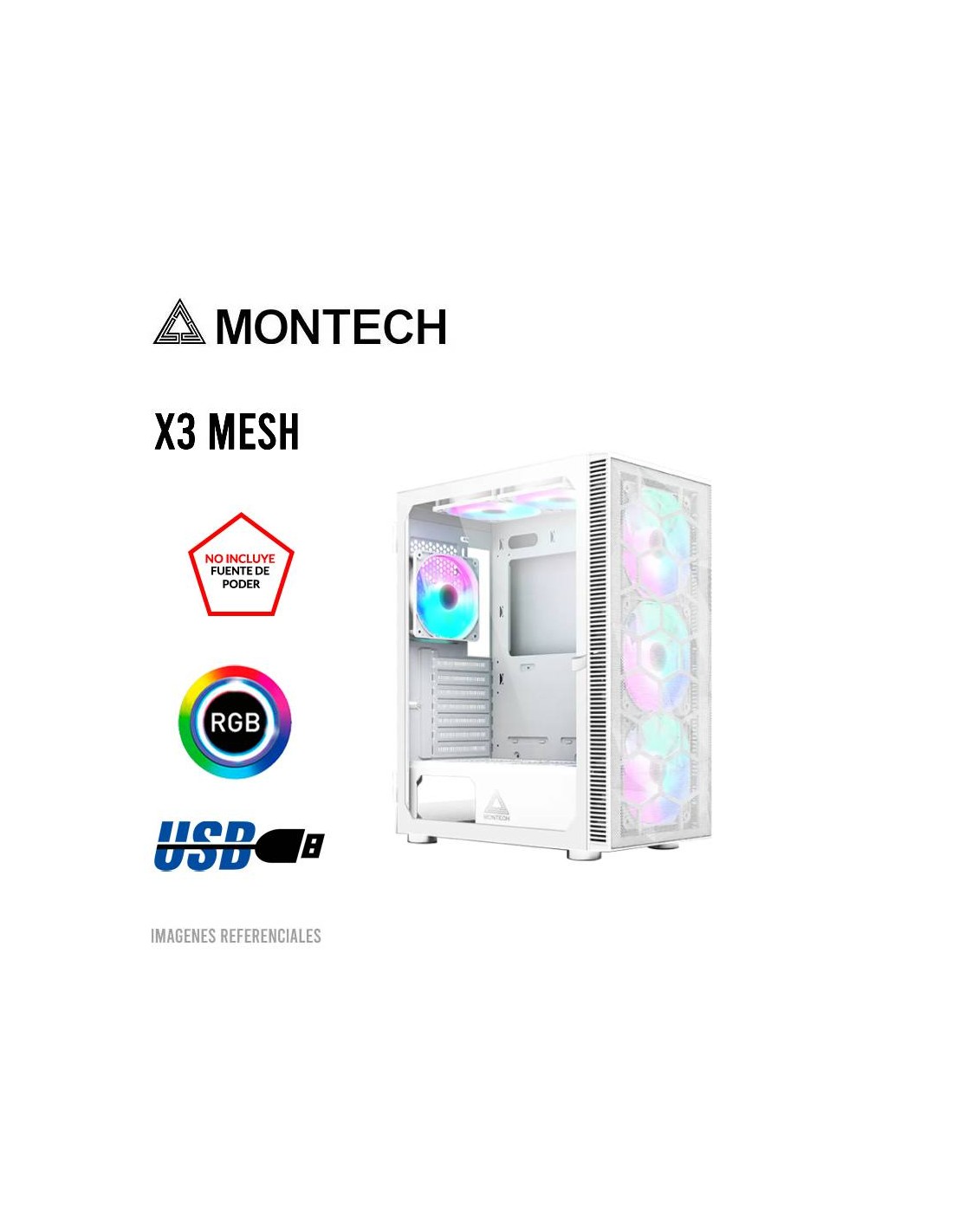 CASE MONTECH X3 MESH S/FUENTE|LED-RGB|BLANCO