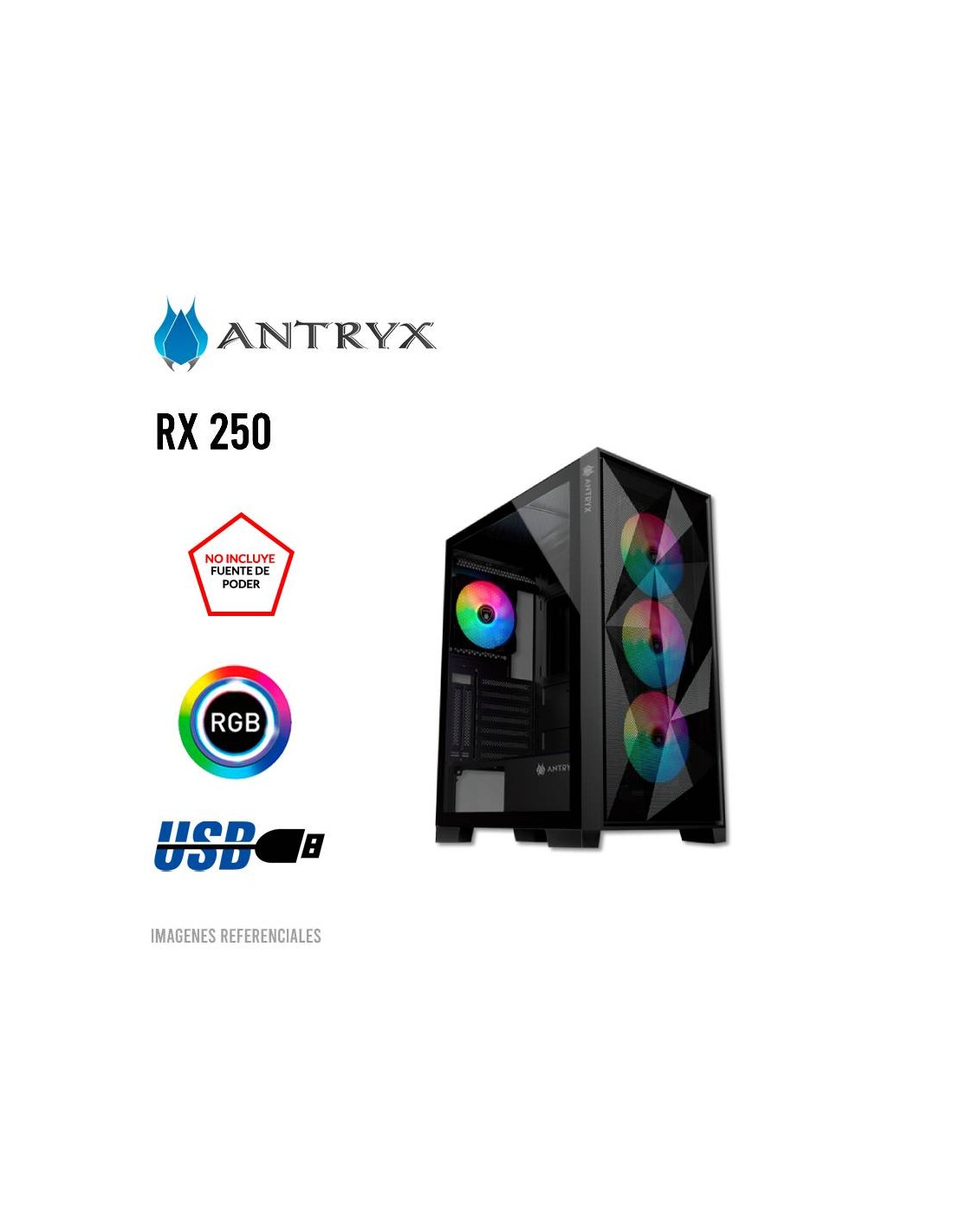 CASE ANTRYX RX 250 BLACK ( AC-RX250KFR ) S/FUENTE | VIDRIO TEMPLADO | 4 FIXED-RGB