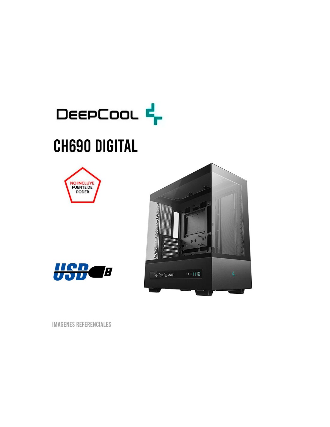 CASE DEEPCOOL CH690 DIGITAL BK (R-CH690-BKNNA0D-G-1) S/FUENTE| VIDRIO TEMPLADO