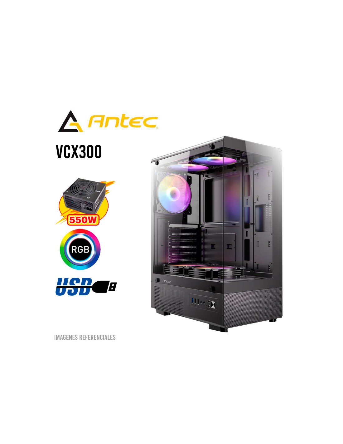 CASE GAMER ANTEC VCX300 ARGB (VCX300AMV55US) 550W| VIDRIO TEMPLADO| ARGB