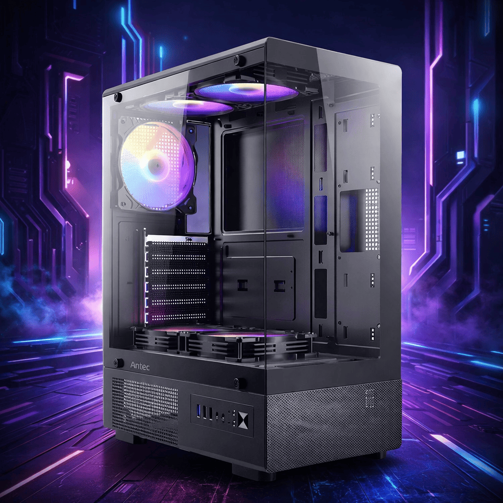El Antec VCX300 es un case gamer diseñado para ofrecer un equilibrio perfecto entre estética, flujo de aire y funcionalidad. Su diseño moderno con panel lateral de vidrio templado permite exhibir todos los componentes de tu setup, mientras que la iluminación ARGB le da un estilo llamativo y personalizable.
