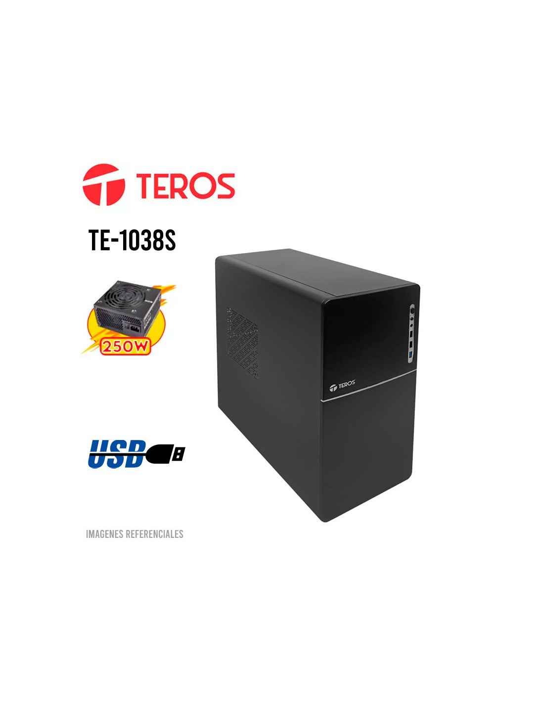 CASE TEROS (TE-1038S) 250W| USB 2.0- 3.0| BLACK