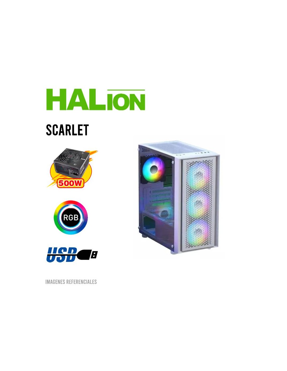 CASE GAMER HALION SCARLET 500W | VIDRIO TEMPLADO | LED-RGB