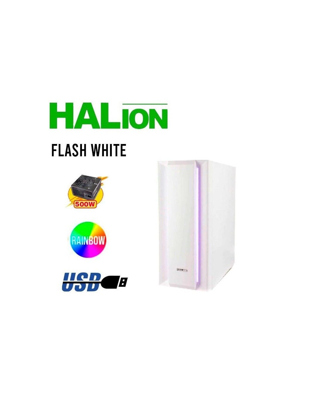 CASE HALION FLASH ( FLASH CH03WH ) 500W | WHITE | PANEL VIDRIO | LED- RGB
