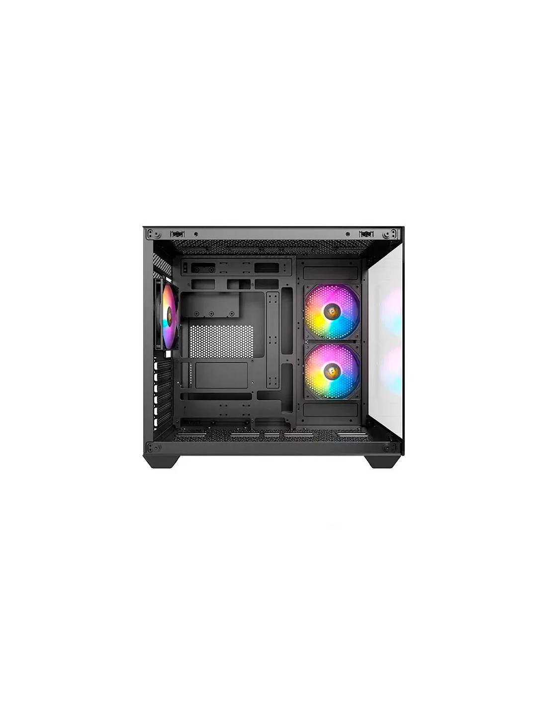Con un diseño de vista completa sobre un vidrio templado de acero sin uniones, el panel frontal e izquierdo del CX800 ARGB ofrece una vista sin obstrucciones de su construcción, creando una exhibición sorprendente para sus componentes. El diseño de cámara doble garantiza un enfriamiento independiente para la CPU/GPU a la izquierda y la fuente de alimentación/unidades a la derecha. El CX800 ARGB es compatible con placas base de nueva generación con conexión trasera. Conecte los cables desde atrás para darle a la parte frontal una apariencia más limpia y un canal de aire más fluido.