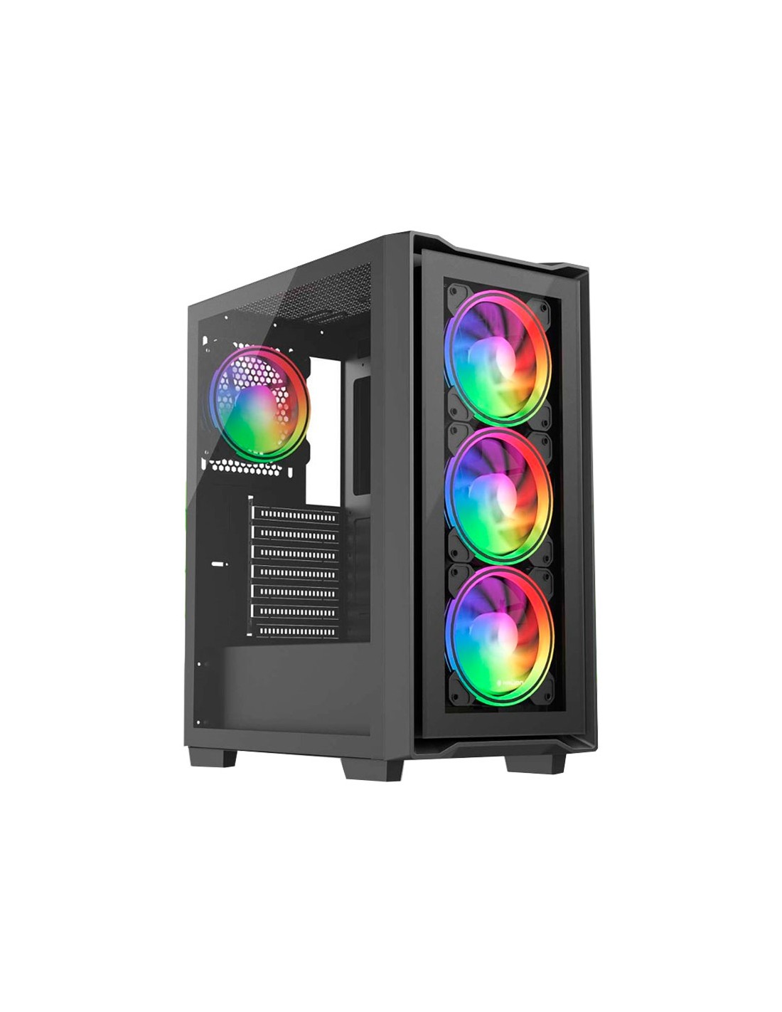El Halion TITAN 108 es un moderno case gamer compatible con placas ATX, Micro-ATX e ITX. Cuenta con 3 ventiladores frontales y 1 posterior ARGB de 120 mm, asegurando un flujo de aire eficiente y espectacular iluminación. Sus paneles frontal y lateral de vidrio templado muestran el hardware con estilo. Incluye 1 puerto USB 2.0 y 1 USB 3.0 para mayor comodidad. Con unas dimensiones de 365 × 216 × 465 mm, combina espacio y diseño elegante para tu PC gamer.