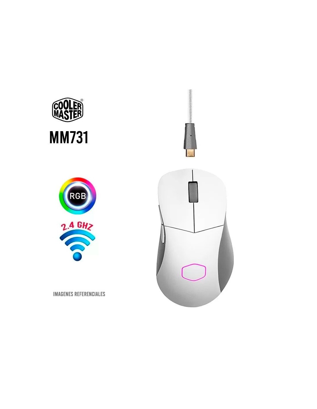 MOUSE GAMING COOLER MASTER MM731 WHITE MATTE ( MM-731-WWOH1 ) WIRELESS - BT | 19K DPI | LED-RGB
