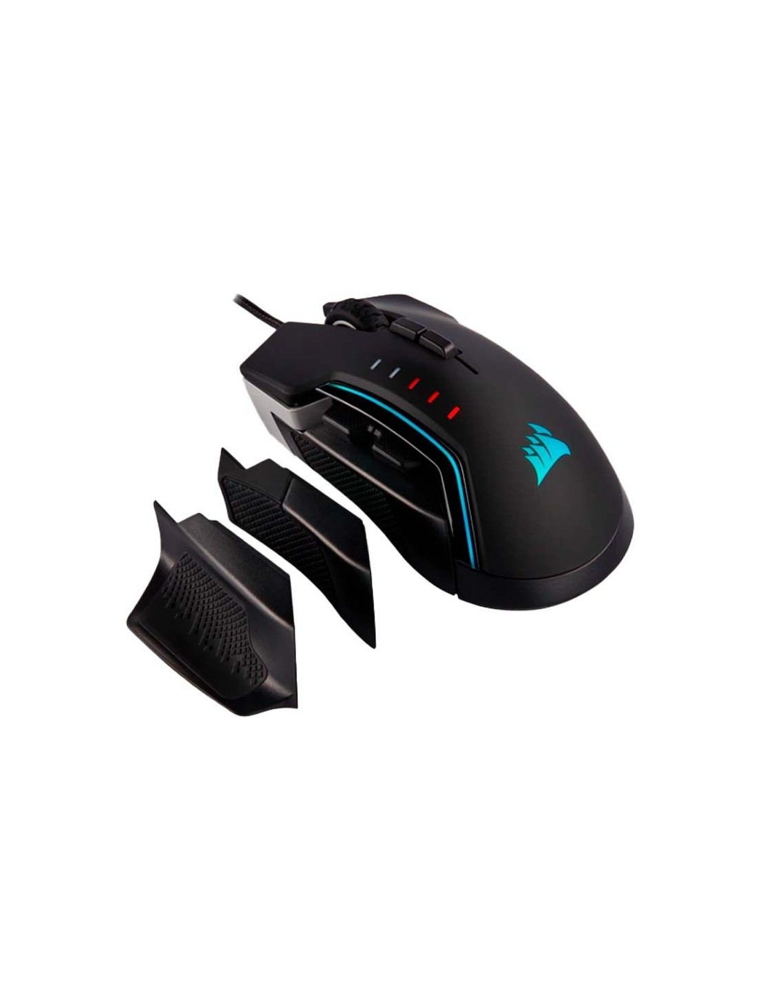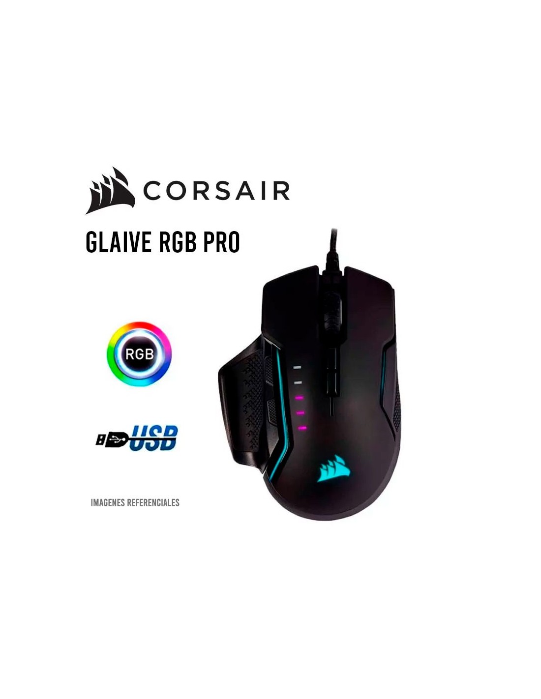El ratón de juego GLAIVE RGB PRO combina un alto rendimiento con gran comodidad, con una forma contorneada ideal para jugar de manera prolongada. Elija entre los tres agarres intercambiables incluidos para la zona del pulgar, para conseguir un ajuste perfecto. Siempre dará lo mejor de sí mismo gracias a un sensor óptico ultrapreciso de 18 000 ppp nativos y conmutadores Omron de alto rendimiento que alcanzan más de 50 millones de clics. Lleve sus perfiles de iluminación, macros y ajustes de ppp a todas partes, sin necesidad de unidades o software adicional.