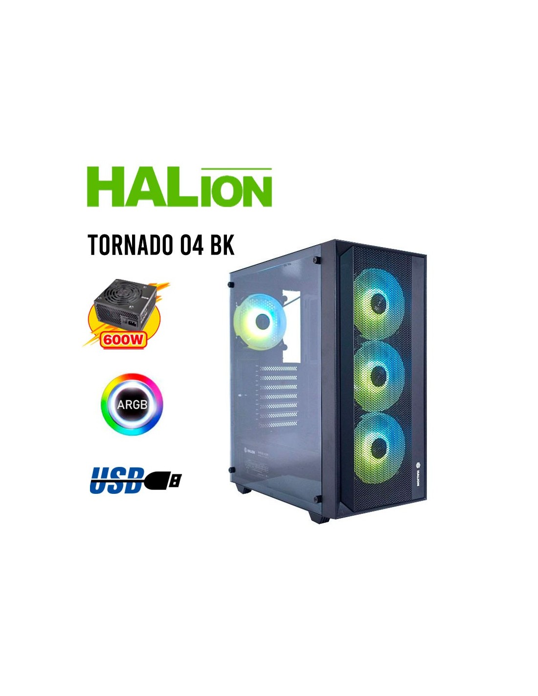 CASE GAMER HALION TORNADO-04 BLACK ( TORNADO 04 BK ) 600W | VIDRIO TEMPLADO | 4 LED-ARGB