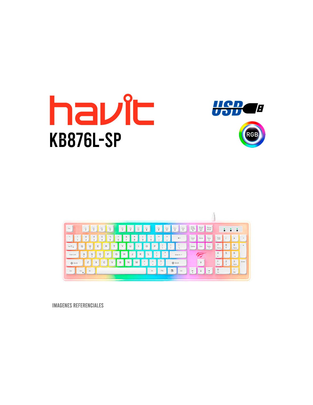 TECLADO HAVIT KB876L-SP WHITE | MEMBRANA - USB | LED-RGB