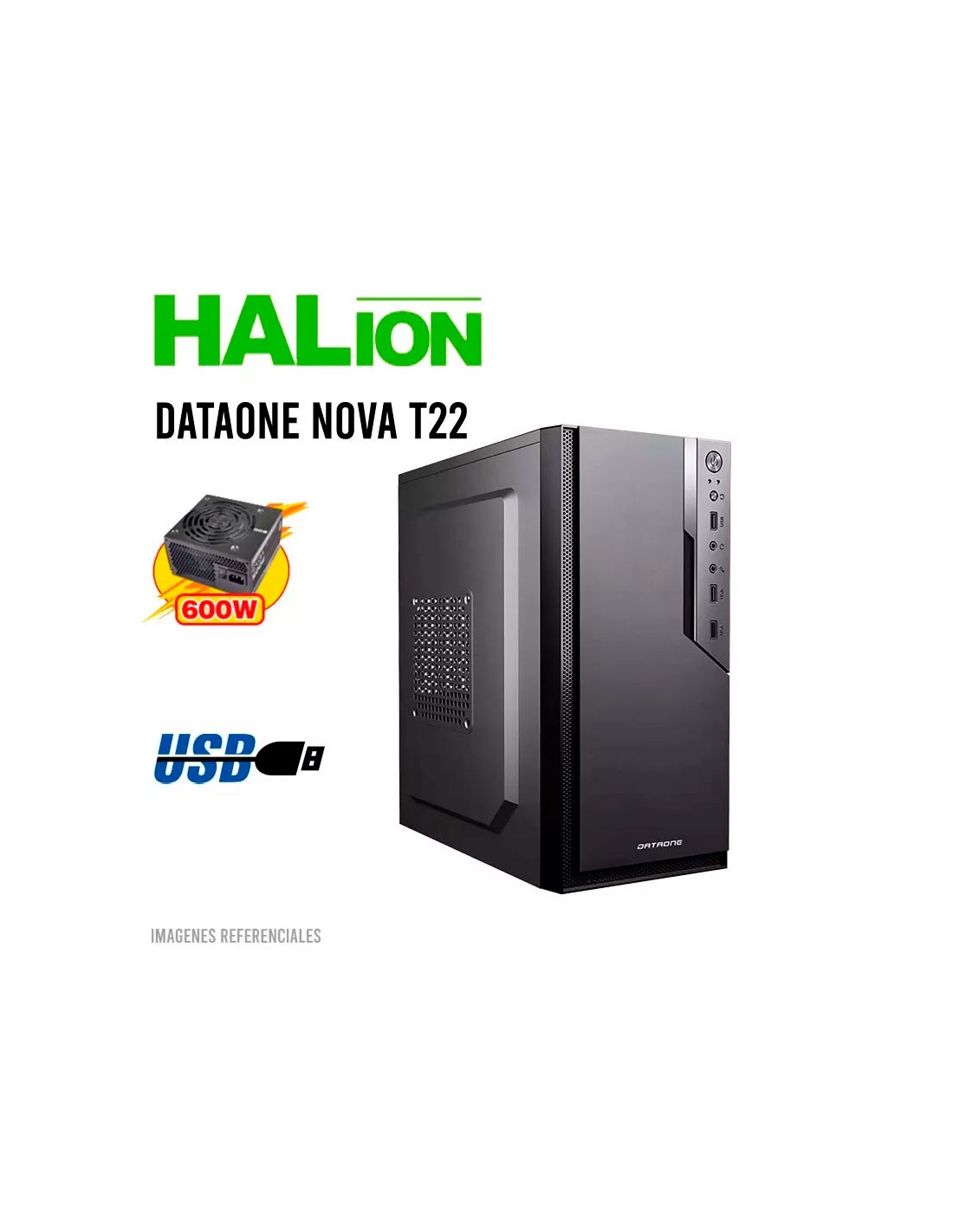- Case: CASE HALION DATAONE NOVA T22 ( T22 ) 600W | NEGRO