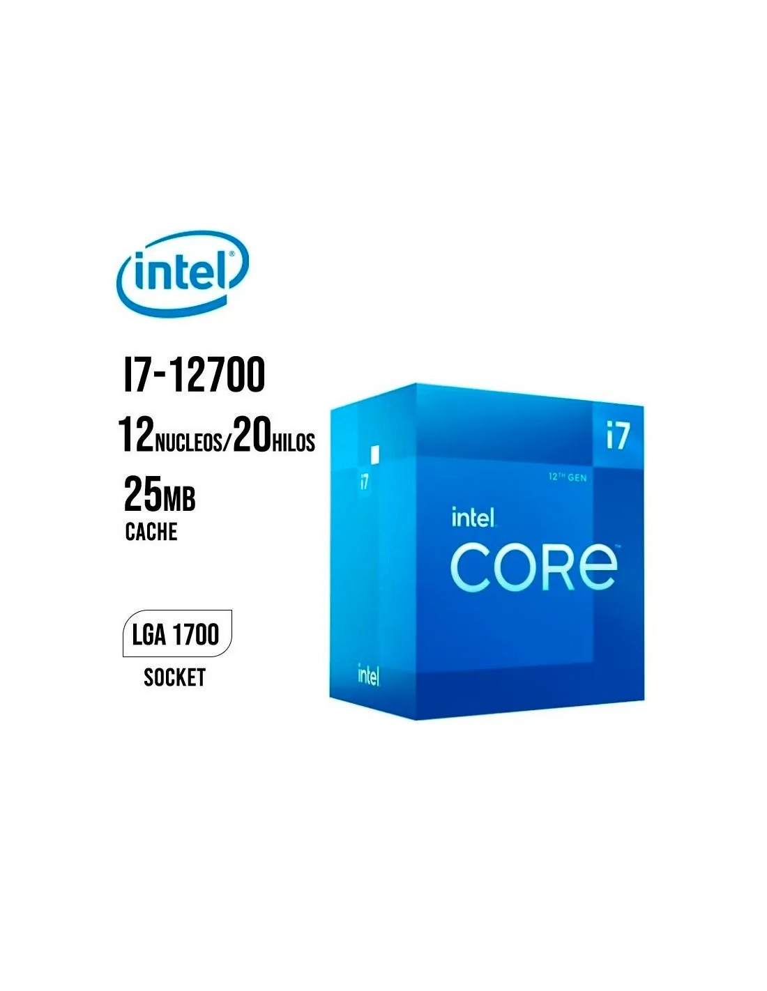 - Procesador: PROCESADOR INTEL CORE I7-12700 2.10GHZ-25MB ( BX8071512700 ) LGA 1700