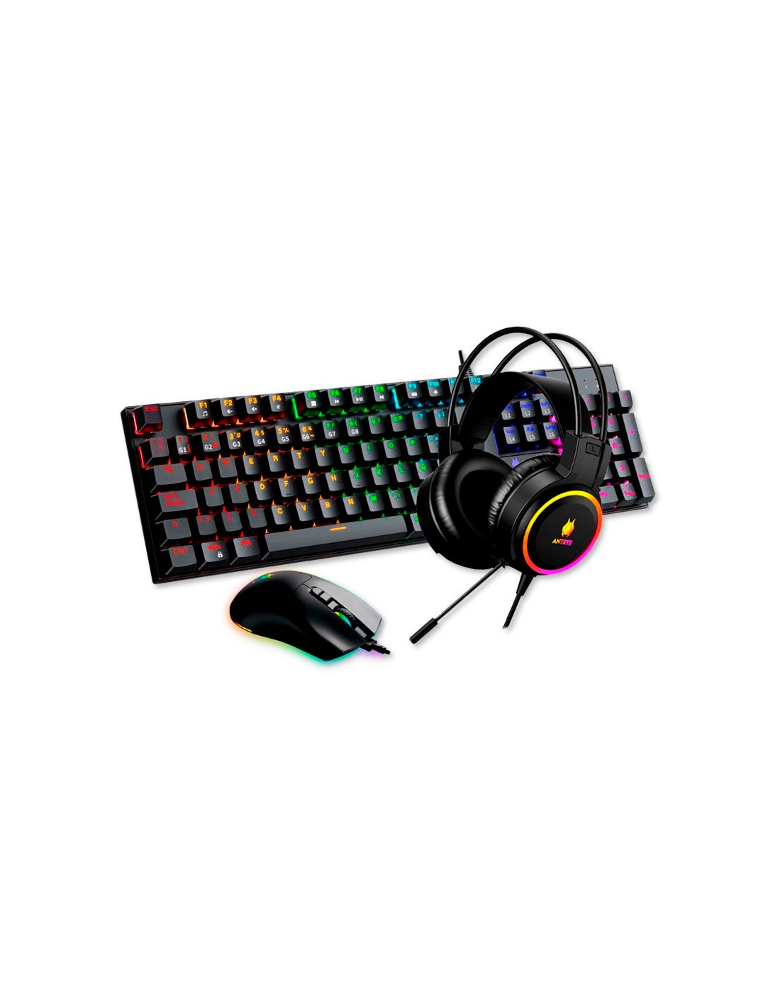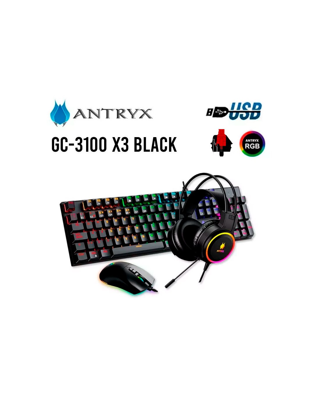 KIT GAMER ANTRYX GC-3100 X3 BLACK ( AGC-3100X3KRE-SP ) TECLADO + MOUSE + AUDIFONO | SWITCH ROJO