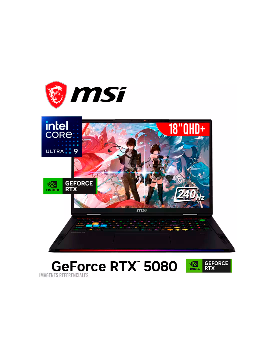 LAPTOP GAMER MSI RAIDER 18 HX AI A2XWIG-420US ULTRA 9-285HX 32GB 1TB SSD GEFORCE RTX 5080 16GB 18 QHD+ 240HZ WINDOWS 11