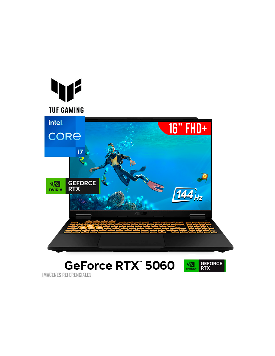 LAPTOP GAMER ASUS TUF FX608JMR-RV024 I7-14650HX 16GB DDR5 1TB SSD T VIDEO RTX 5060 8GB 16 FHD+ 144HZ FREEDOS(90NR0NB1-M00280)