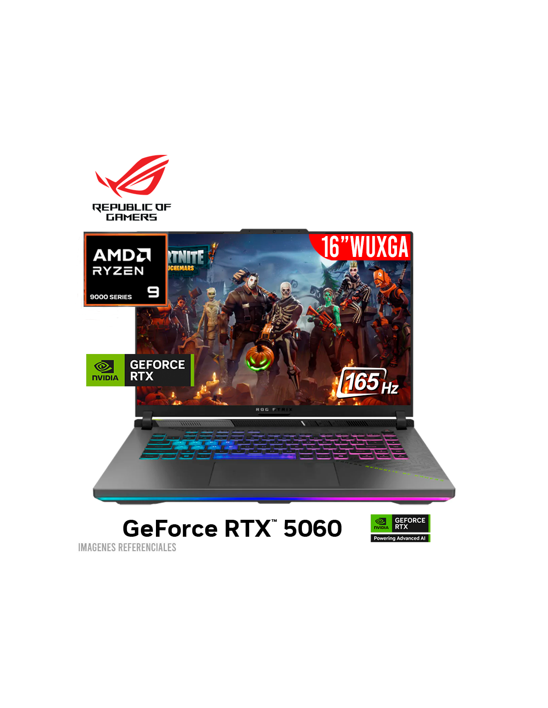 LAPTOP GAMER ASUS ROG STRIX G16 G614FM-WS94 RYZEN 9-9955HX 16GB 1TB SSD RTX 5060 8GB 16" WUXGA WINDOWS 11 (90NR0L17-M00010)