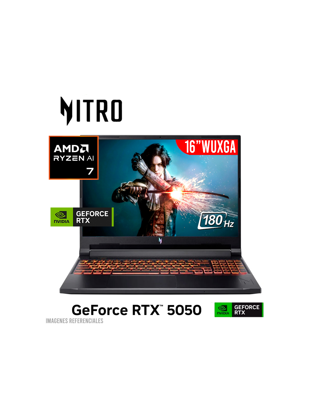 LAPTOP GAMER ACER NITRO ANV16-42-R96P RYZEN 7-260 16GB 512GB SSD GEFORCE RTX 5050 8GB 16 WUXGA 180HZ WINDOWS 11 (NH.U2NAA.003)