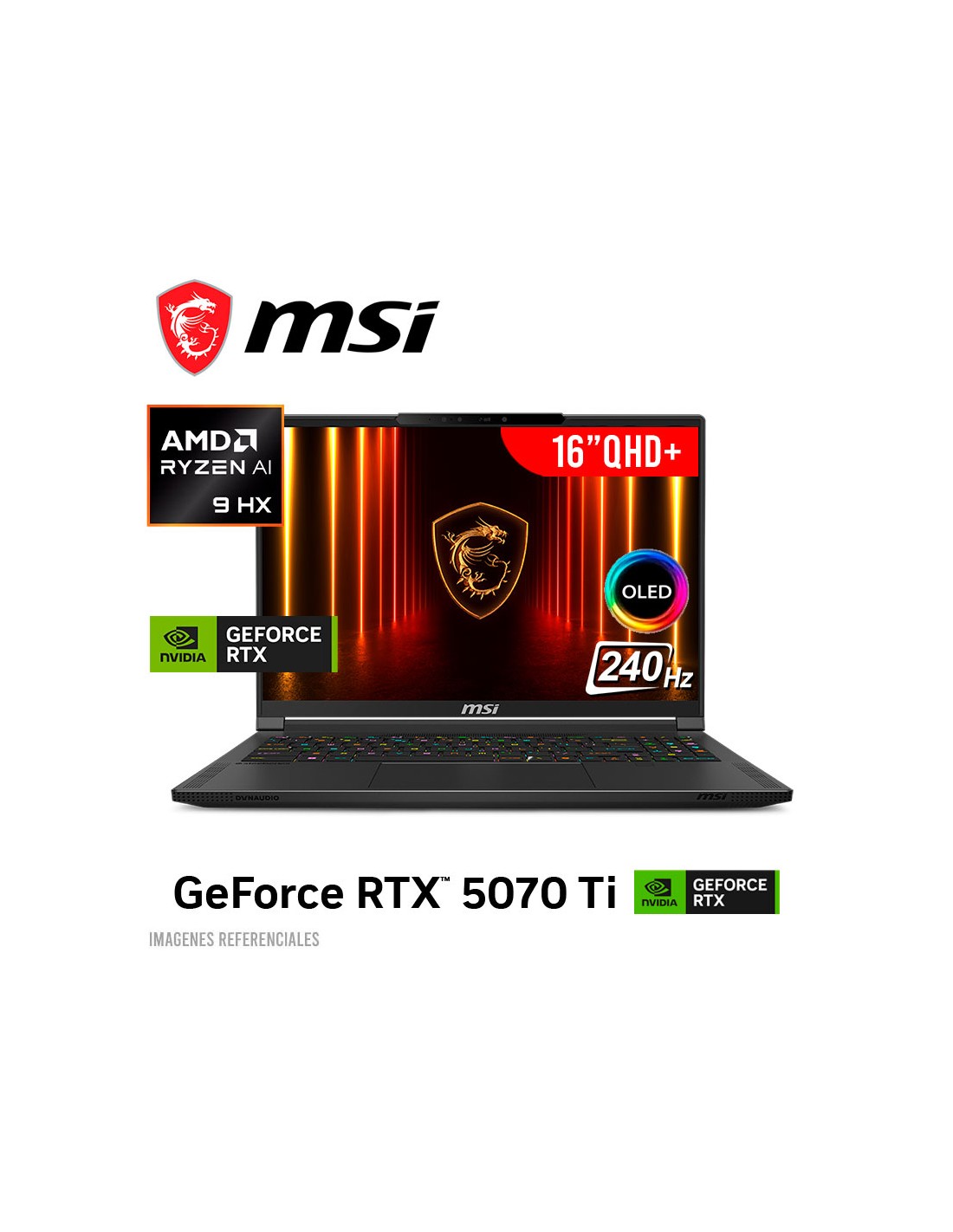 LAPTOP GAMER MSI STEALTH A16 A3XWHG-079US RYZEN 9 HX 370 32GB 2TB SSD GEFORCE RTX 5070 TI 12GB 16 QHD+ 240HZ WINDOWS 11