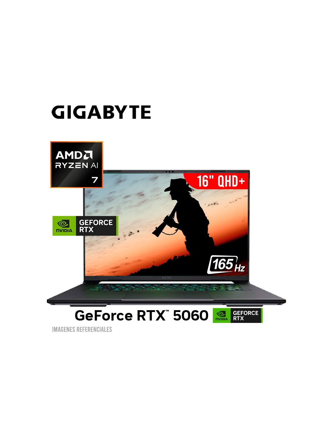 LAPTOP GAMER GIGABYTE AERO X16 RYZEN AI 7-350 32GB 1TB SSD GEFORCE RTX 5060 8GB 16 QHD+ 165HZ FREEDOS (AERO X16 1VH93LAC64GD)