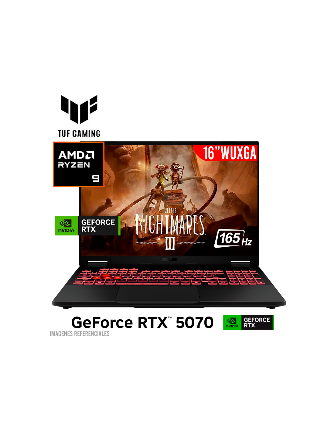LAPTOP GAMER ASUS TUF GAMING A16 FA608UP-A16.R95070 RYZEN 9-270 32GB DDR5 1TB SSD GEFORCE RTX 5070 8GB 16 WUXGA 165HZ WINDOWS 11