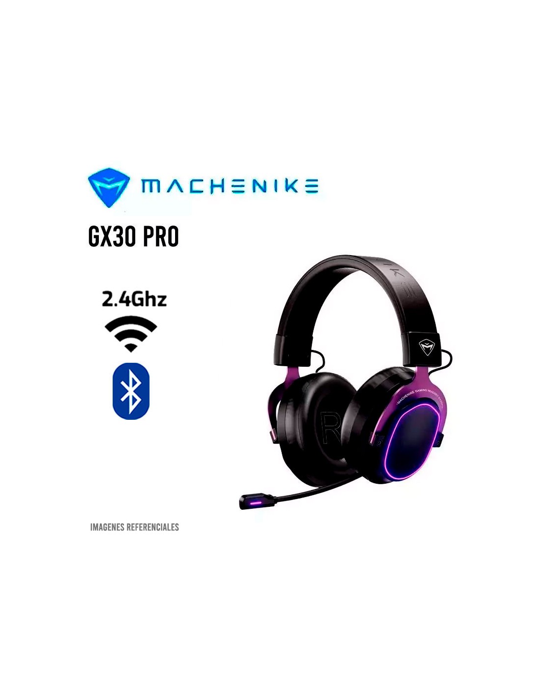 AUDIFONO GAMER MACHENIKE GX30 PRO ( GX30PRO-BK ) WIRELESS - BT | PC - ANDORID - IOS - NINTENDO SWITCH | LED