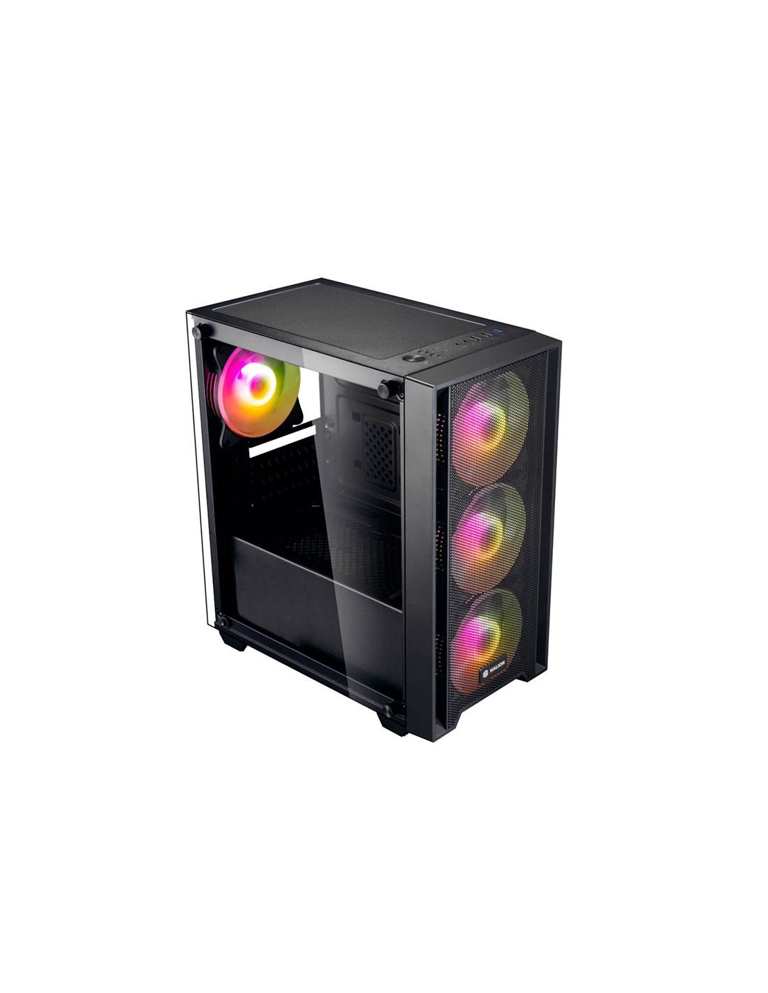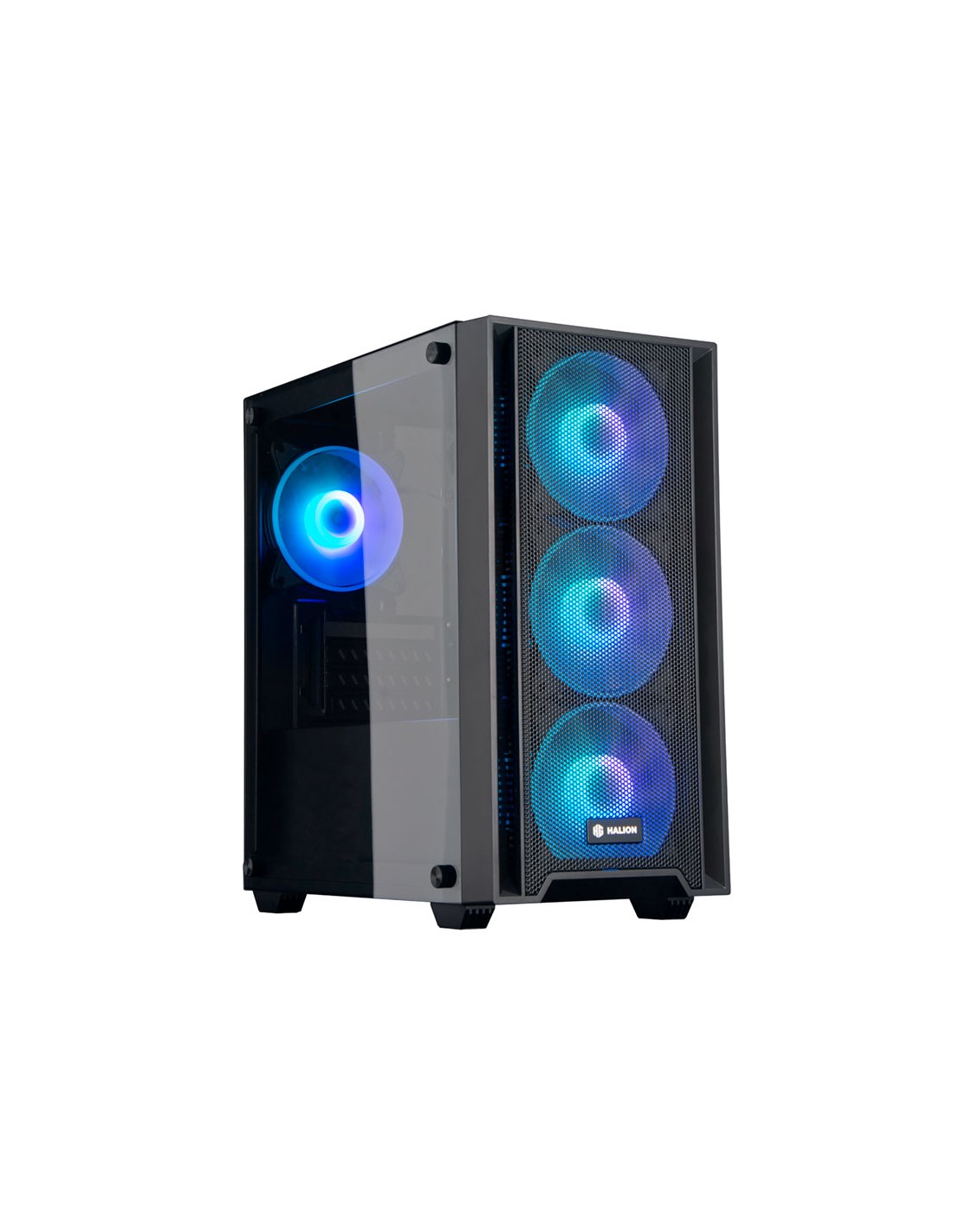 El Halion Ragnarok 321 es un case gamer Mid Tower con un diseño moderno que combina un panel lateral de vidrio templado y un frontal de malla, permitiendo buena visibilidad interna y excelente flujo de aire. Incluye cuatro ventiladores RGB de 120 mm preinstalados y una fuente de 550 W, ideal para armar un equipo completo sin comprar fuente aparte. Es compatible con placas Micro ATX e ITX, tarjetas gráficas de hasta 31 cm y sistemas de refrigeración líquida frontal o superior. Su interior ofrece espacio para múltiples discos y un manejo ordenado de cables, siendo una opción estética, funcional y accesible para cualquier setup gamer.