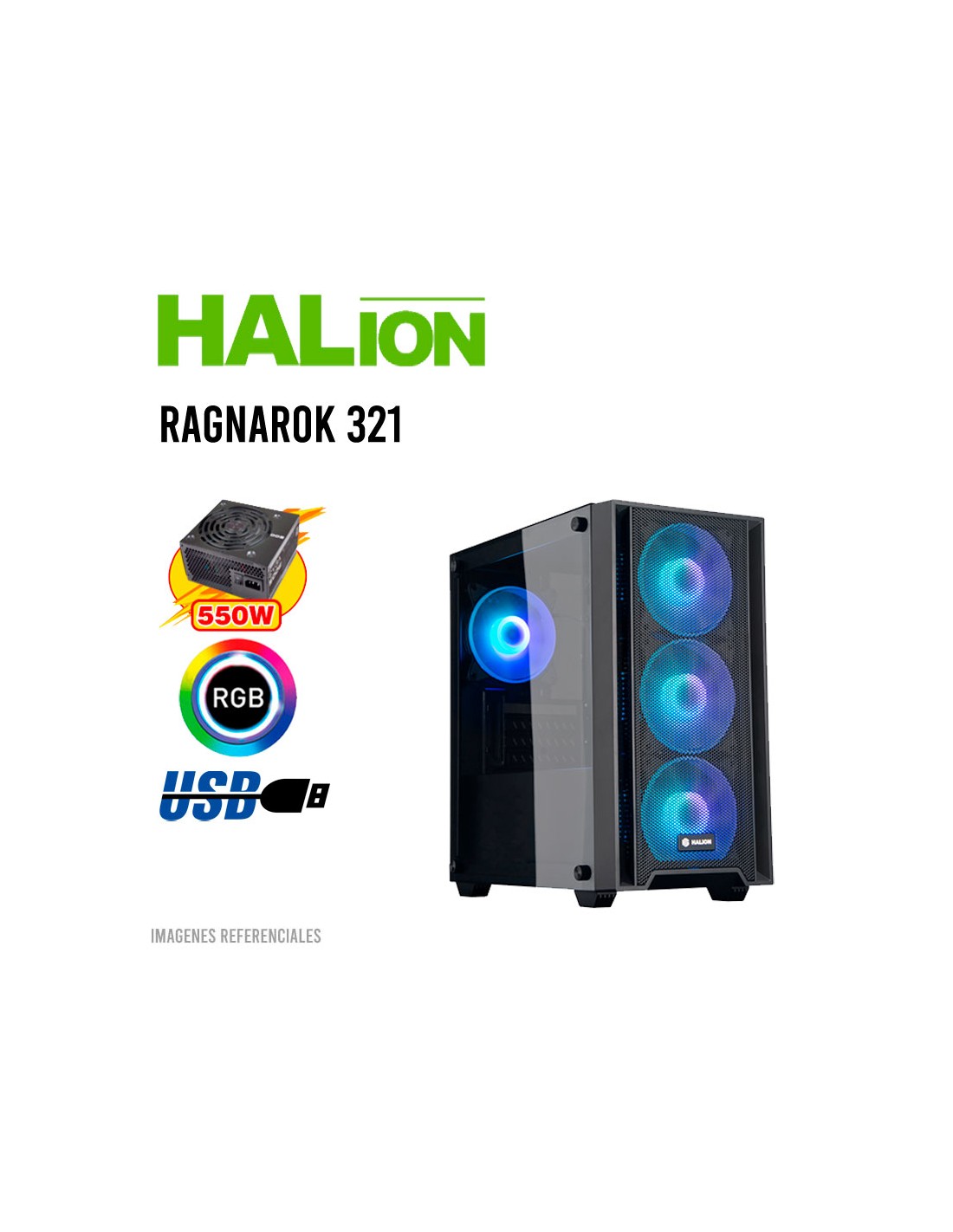 CASE GAMER HALION RAGNAROK 321 ( RAGNAROK-321 ) 550W | VIDRIO TEMPLADO | LED-RGB
