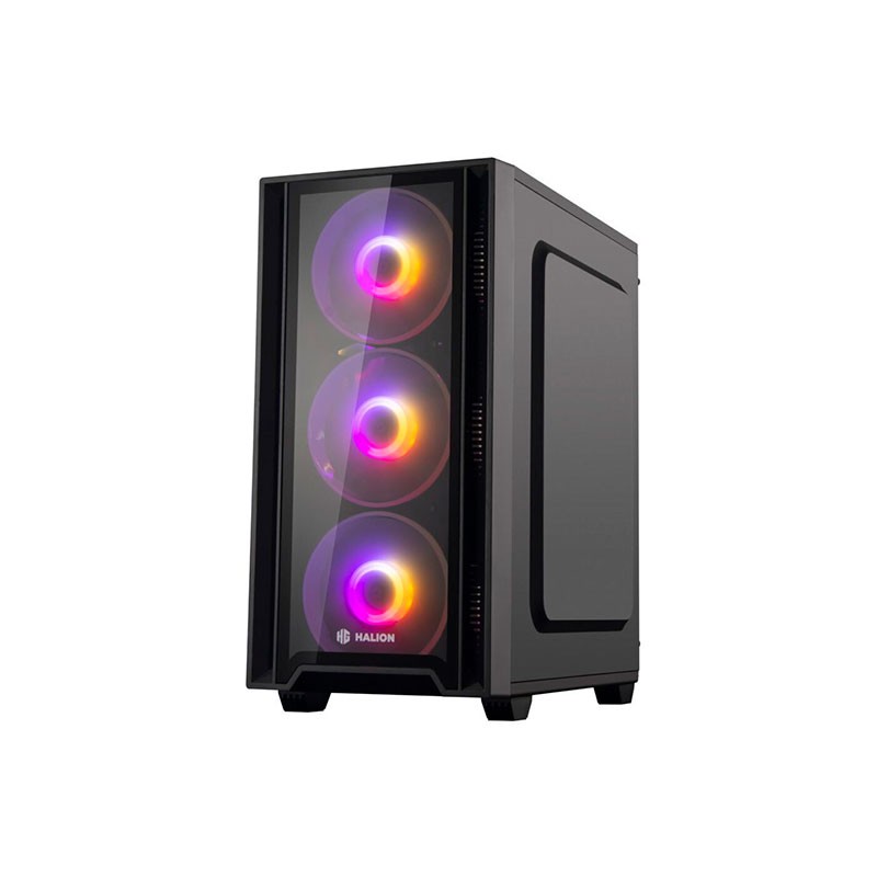El Halion Ragnarok 320 es un case moderno y robusto diseñado para potenciar cualquier setup gamer con estilo y rendimiento. Su panel lateral de vidrio templado permite lucir todos tus componentes, mientras que su frontal con iluminación RGB ofrece un efecto visual impactante. Incluye amplio espacio para tarjetas gráficas de gran tamaño y una eficiente gestión de cables para un armado limpio. Su sistema de ventilación optimizado garantiza un flujo de aire superior, ideal para largas sesiones de juego. El Ragnarok 320 combina diseño, calidad y funcionalidad, convirtiéndolo en la opción perfecta para renovar tu PC.