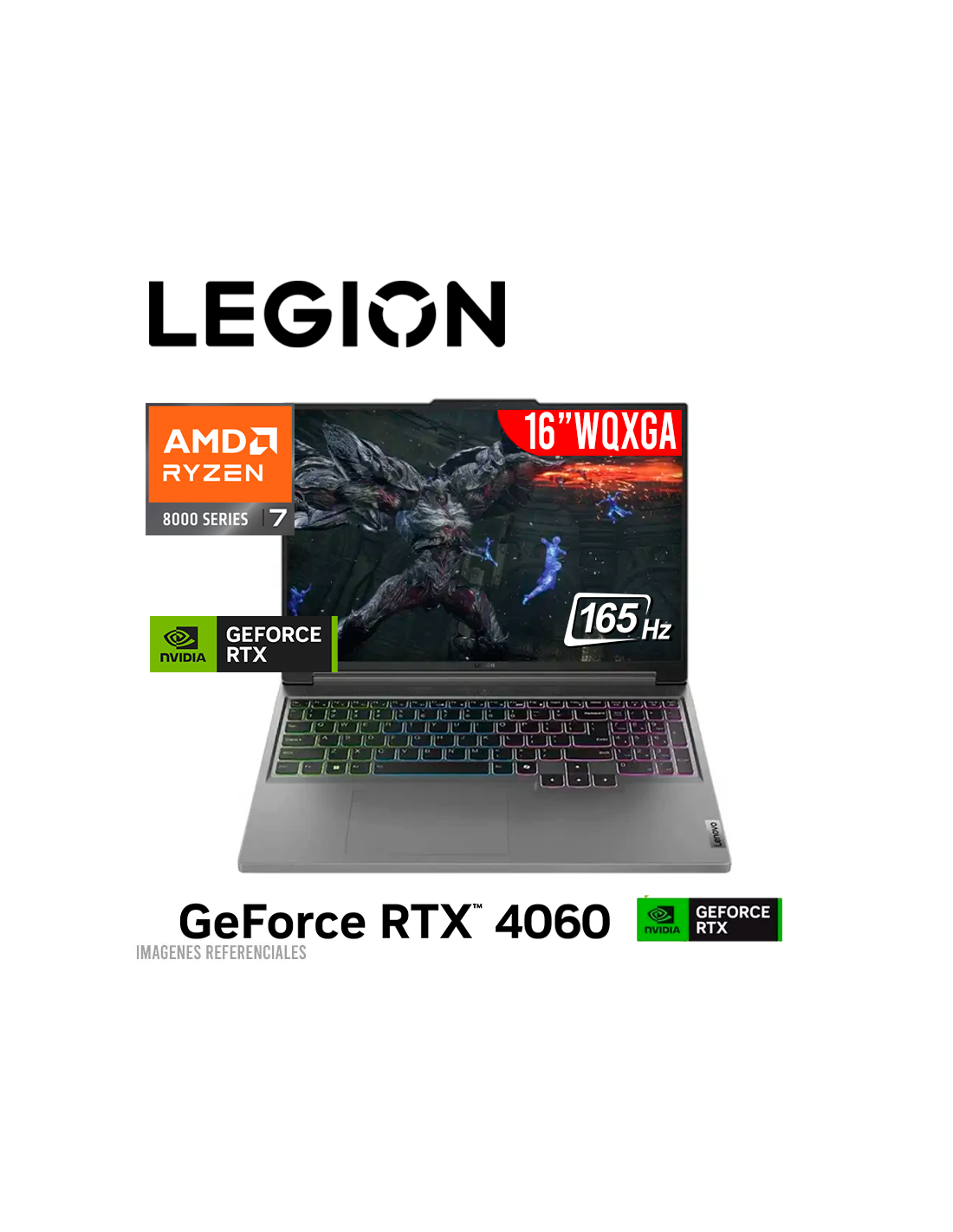 LAPTOP GAMER LENOVO LEGION SLIM 5 16AHP9 RYZEN 7-8845HS 16GB 512GB SSD RTX 4060 16.0" WQXGA FREEDOS (83DH0086LM)