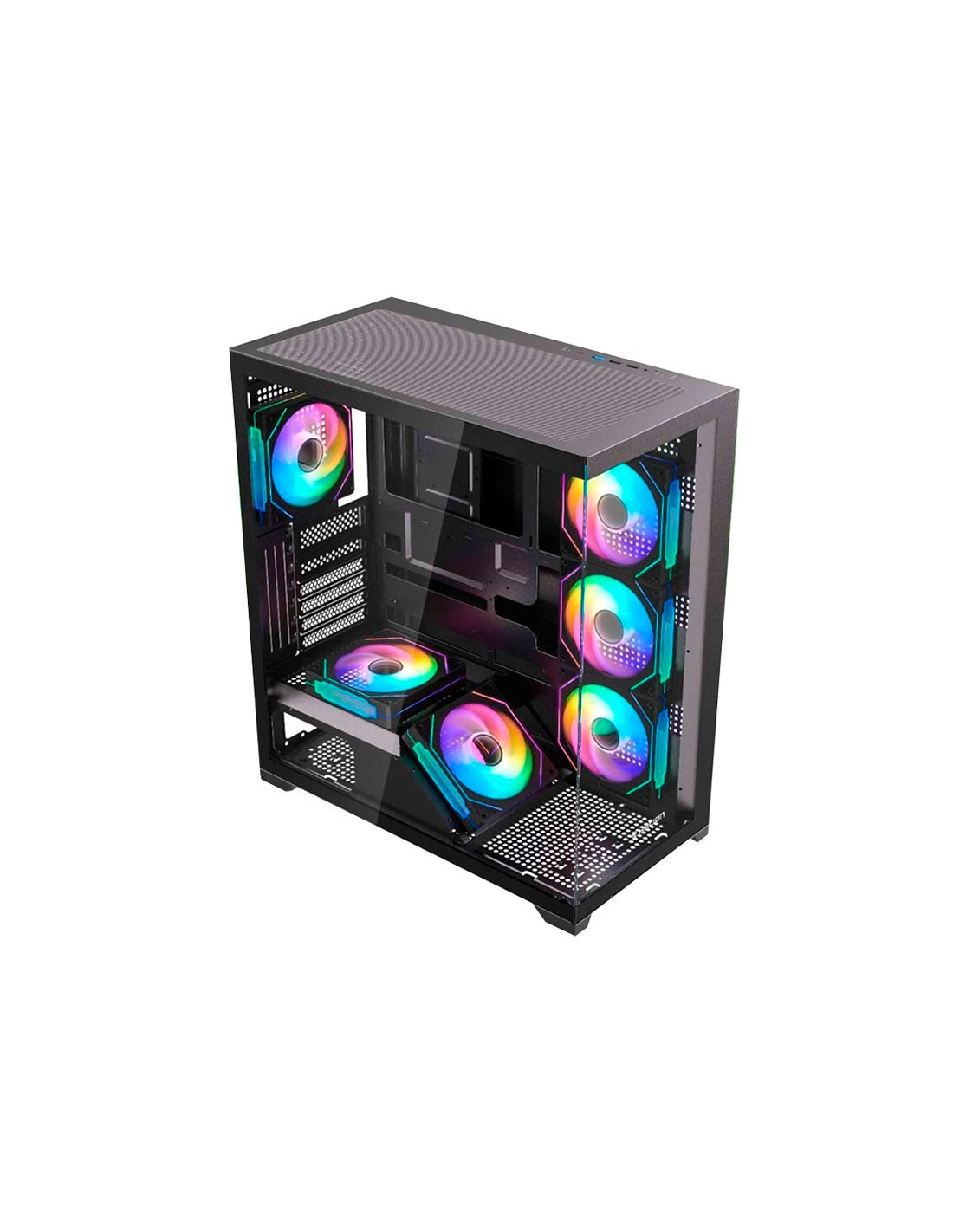 El Saturno M05 Halion es un moderno case gamer compatible con placas ATX, Micro-ATX y Mini-ITX. Cuenta con 6 ventiladores ARGB de 120 mm, que ofrecen un flujo de aire optimizado y efectos de iluminación llamativos. Sus paneles frontal y lateral de vidrio templado permiten mostrar tu hardware con estilo. Incluye 1 puerto USB 2.0 y 1 USB 3.0 para mayor comodidad en la conexión de periféricos. Con unas dimensiones de 42 × 21,5 × 47 cm, combina espacio, funcionalidad y diseño moderno para tu PC gamer.