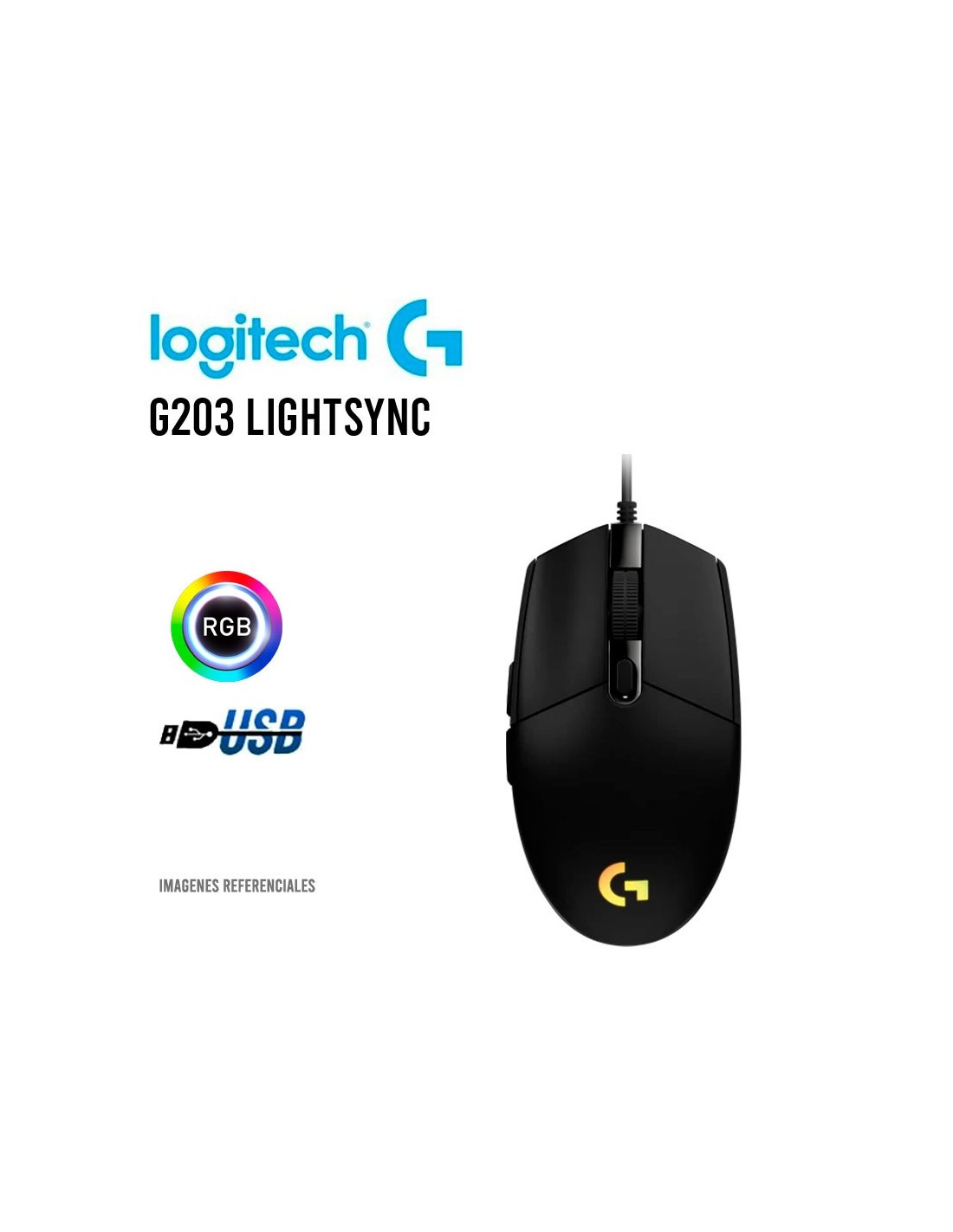 MOUSE GAMER LOGITECH G203 BLACK LIGHTSYNC ( 910-005790 ) 8000 DPI | LED-RGB