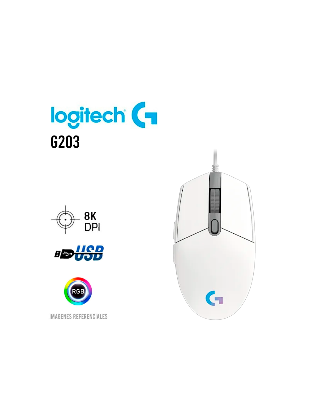 MOUSE GAMER LOGITECH G203 WHITE LIGHTSYNC ( 910-005791 ) 8000 DPI | LED-RGB