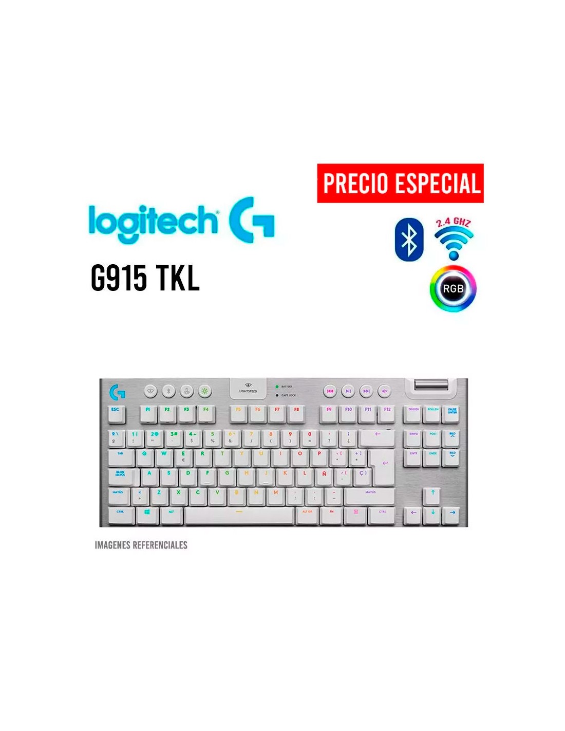 TECLADO GAMER LOGITECH G915 TKL MECANICO LIGHTSPEED ( 920-009660 ) LED RGB | GL TACTILE | WHITE