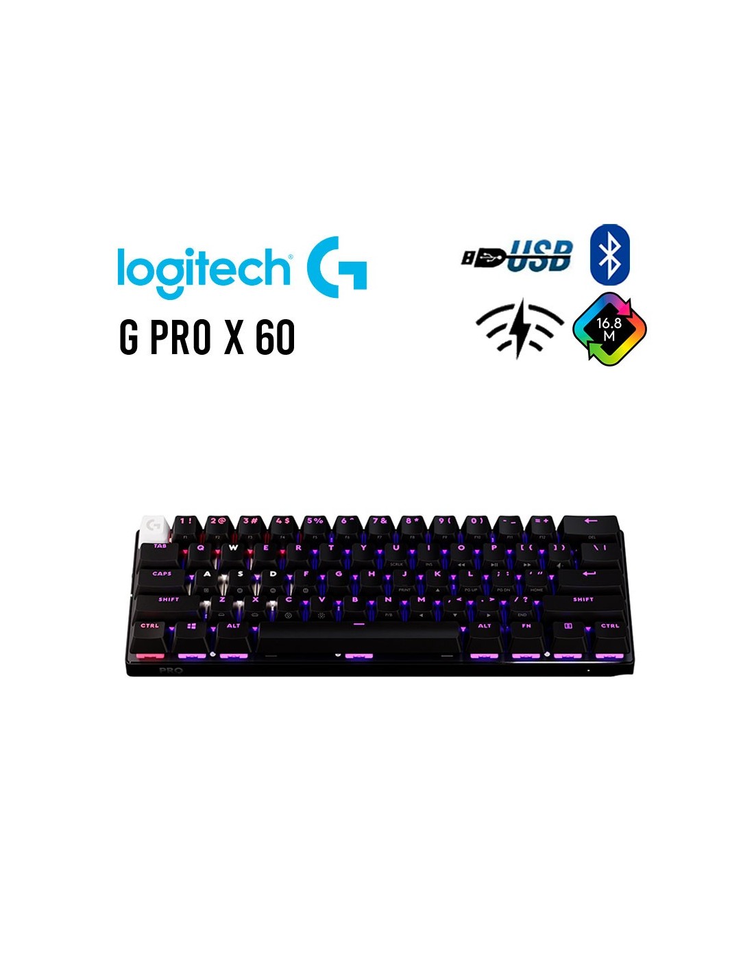 TECLADO LOGITECH G PRO X 60 LIGHTSPEED BLACK ( 920-011902) LED-RGB