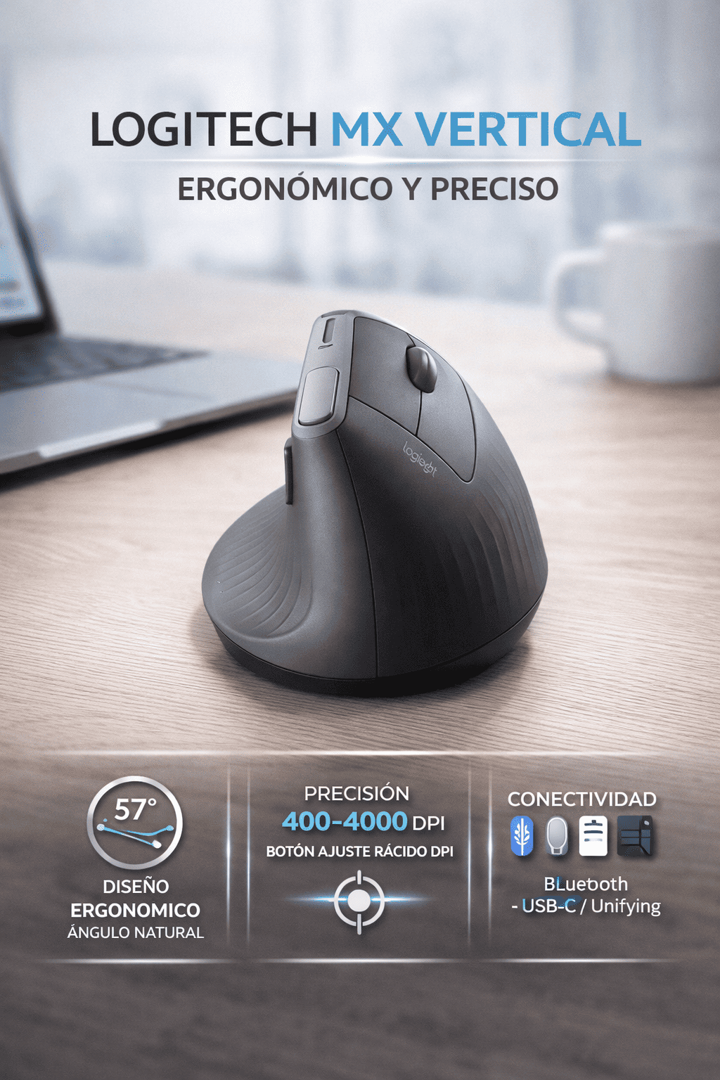 El Logitech MX Vertical es la elección ideal para quienes buscan salud, confort y productividad, sin sacrificar rendimiento.