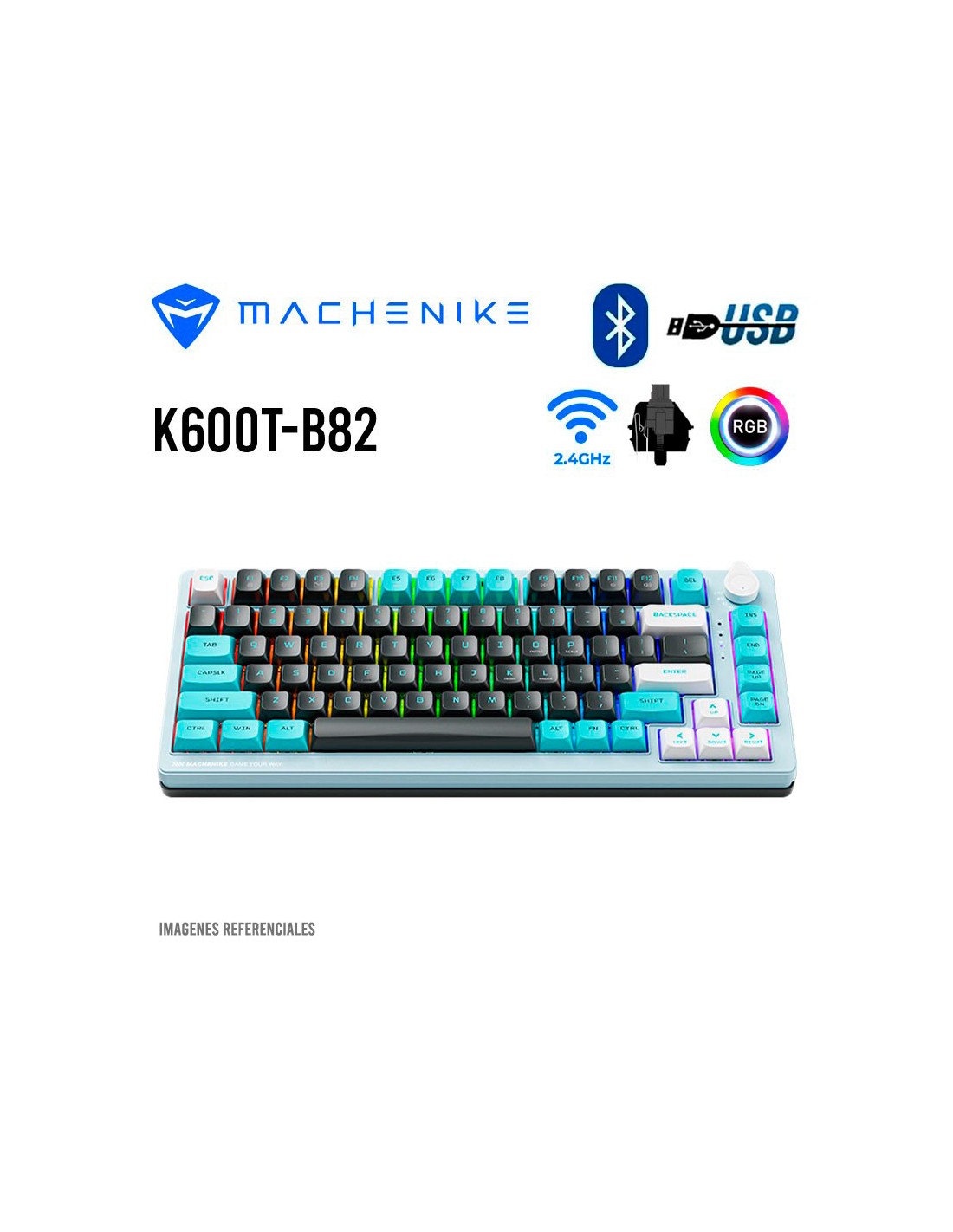 TECLADO GAMER MACHENIKE K600T-B82 BLUE ( K600T-B82 ) SWTICH SILVER LINEAR| LED RGB
