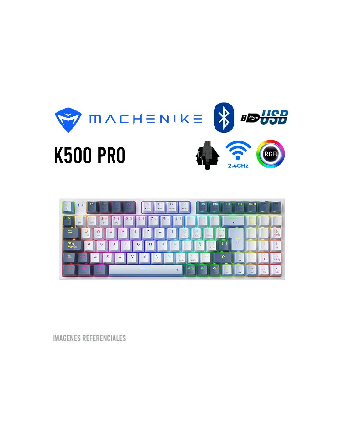 TECLADO GAMER MACHENIKE K500 PRO RGB SWITCH SILVER (K500 PRO-B94W) WHITE|USB-BLUETOOTH-WIRELESS