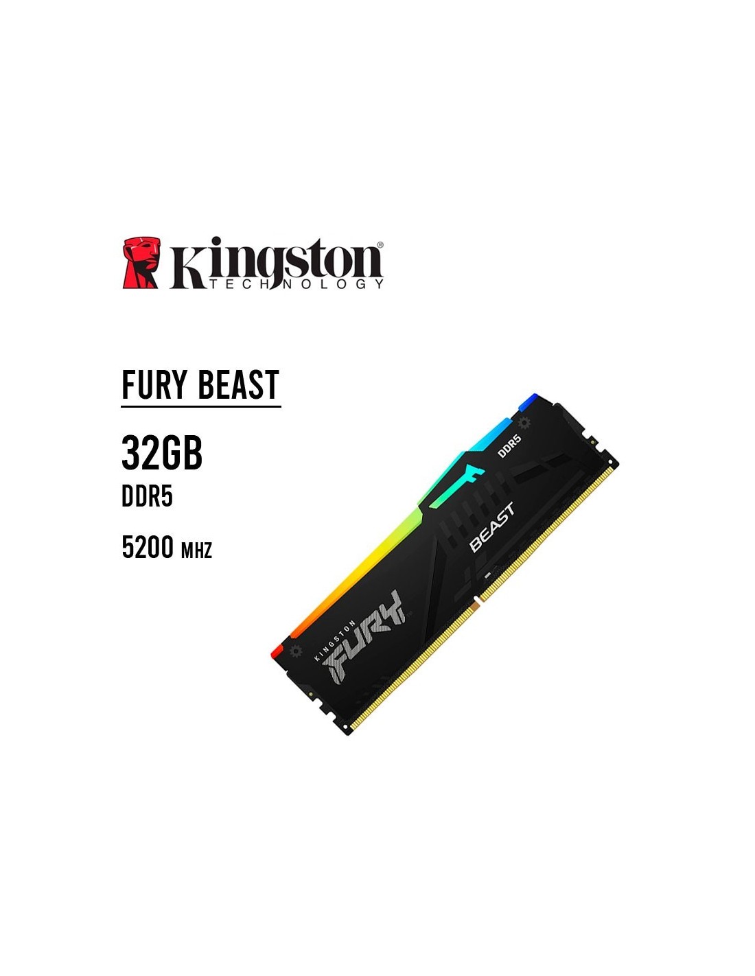 MEMORIA RAM KINGSTON 16GB/6000MHZ DDR5 FURY BEAST ( KF560C36BBE2-16 )